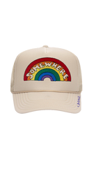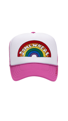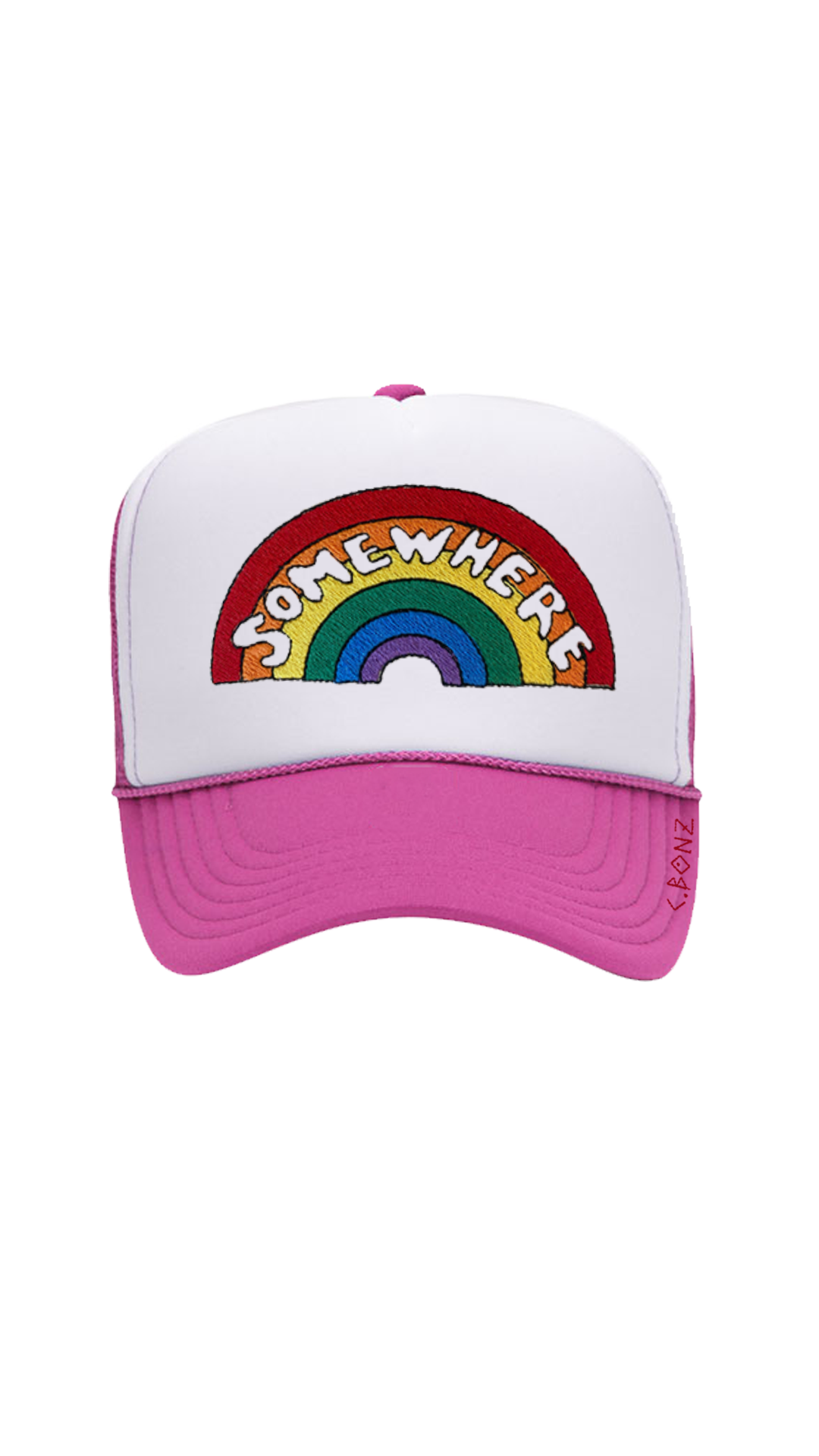 5 Panel Trucker hat with foam front and mesh back available in sand, black, and pink with my SOMEWHERE in the Rainbow design embroidered on the center front. My newest edition to my SOMEWHERE collection! One size fits most.