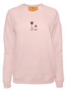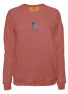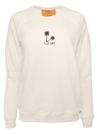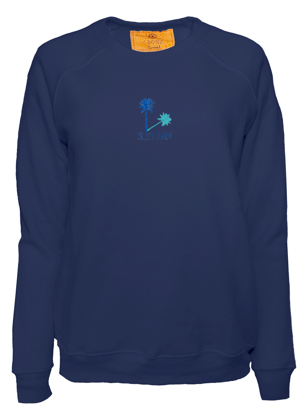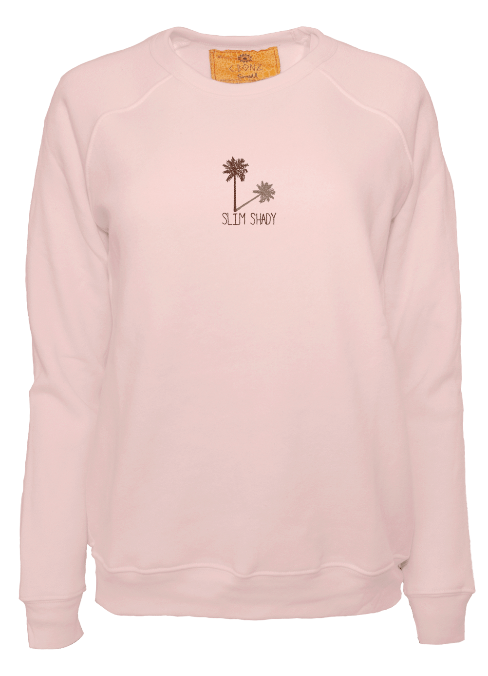 My classic cut crewneck pullover made from my special Ridiculously Cozy fabric in your choice of cream, sunset pink, terracotta, or zuma blue featuring my exclusive Slim Shady palm tree graphic embroidered on the center chest.