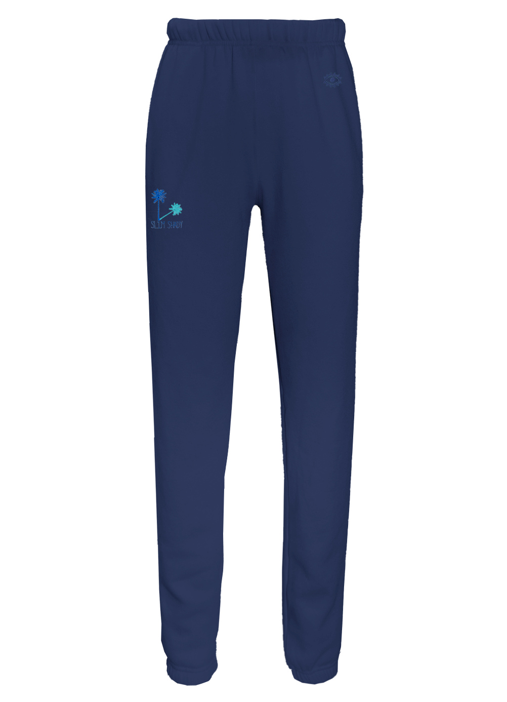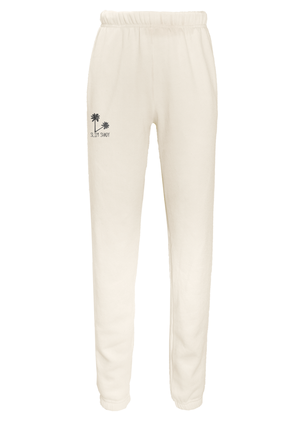 My classic sweatpants with front side-slip pockets made from my special Ridiculously Cozy fabric in your choice of cream, sunset pink, terracotta, or zuma blue featuring my exclusive Slim Shady palm tree graphic embroidered on the right thigh.