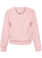 My classic cut crewneck pullover in kid's sizing made from my special Ridiculously Cozy fabric in your choice of cream, zuma blue, sunset pink, or terracotta featuring my exclusive hand drawn customizable nameplate necklaces. Choose from rainbow, or gold nameplate charms.
