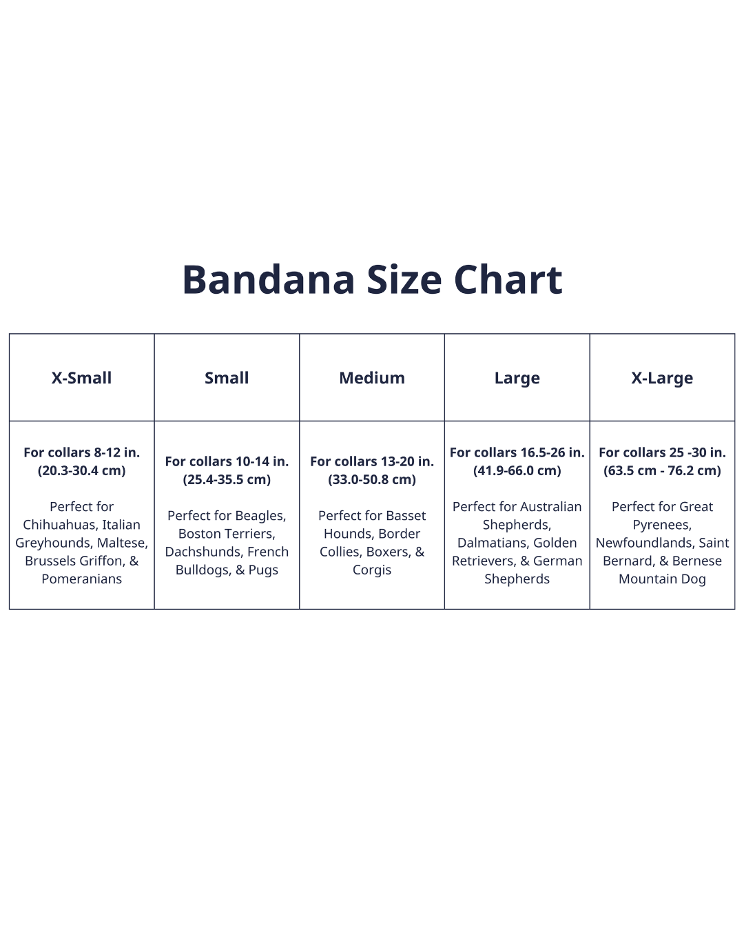 Our embroidered dog bandanas are made for easy wear + extra flair with double-sided patterns. Just slide them over your pup’s collar for a comfy, secure fit. No knots, no hassle.