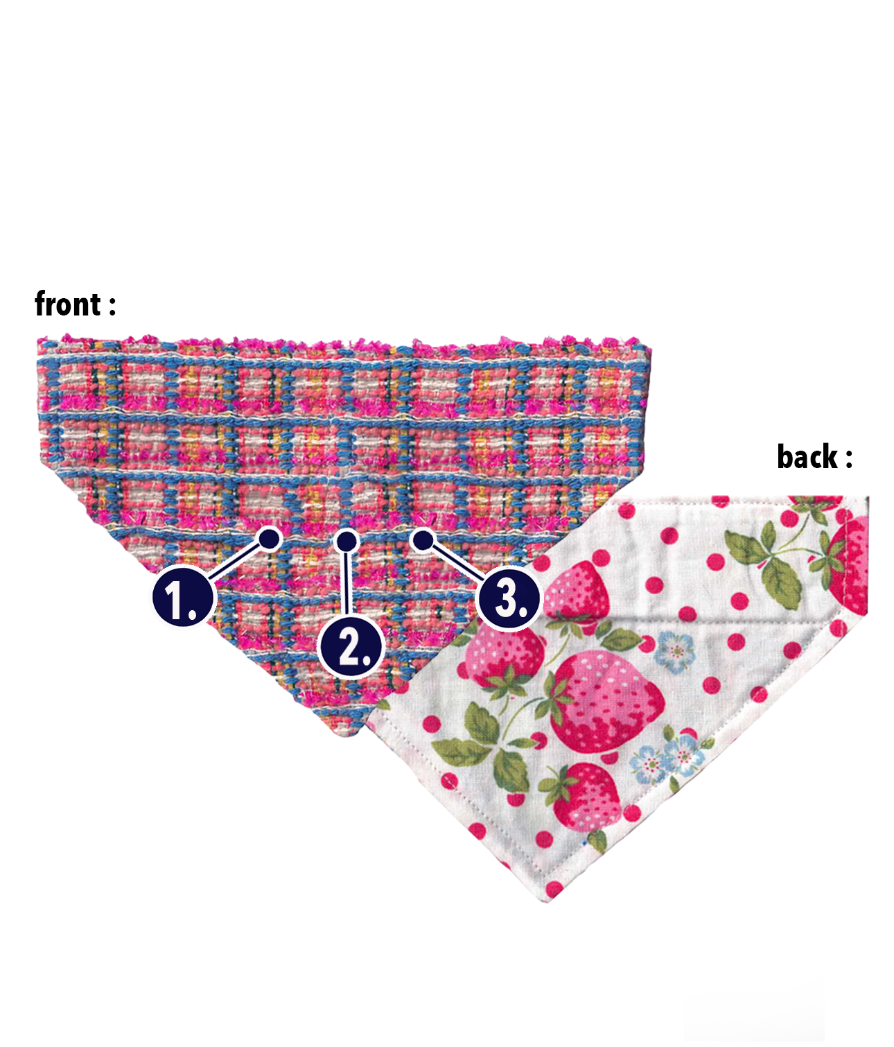Our embroidered dog bandanas are made for easy wear + extra flair with double-sided patterns. Just slide them over your pup’s collar for a comfy, secure fit. No knots, no hassle.