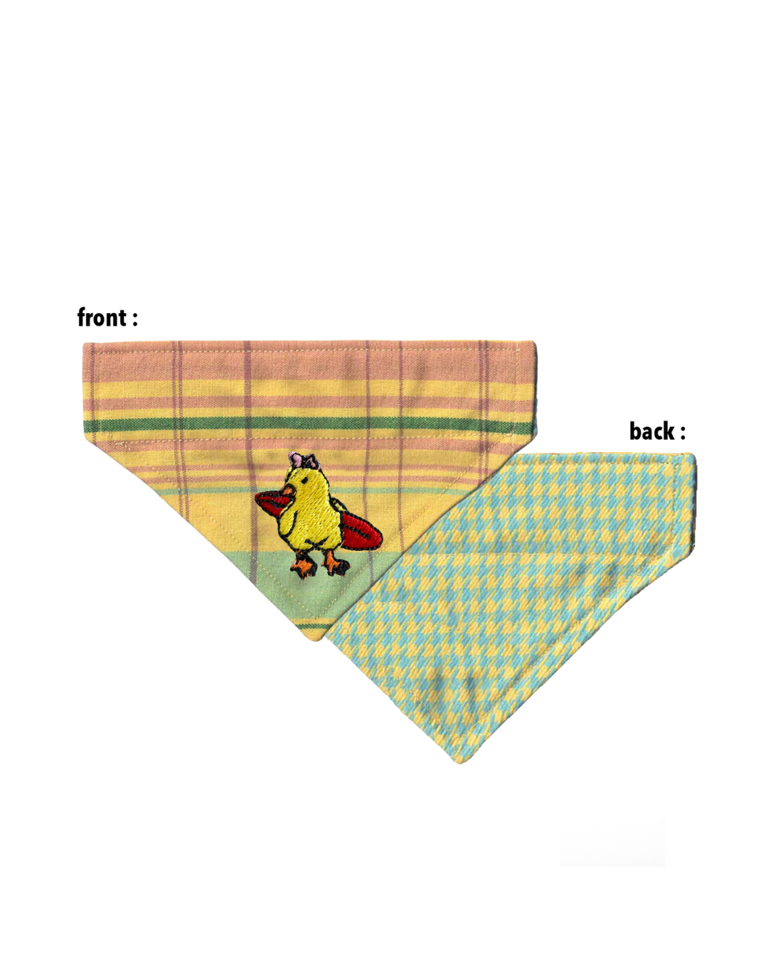 Featuring our surfer chick embroidery mini design, this bandana is a playful nod to sunny days and boardwalk strolls. Whether it’s a daily walk, weekend adventure, or special occasion, it’s available in multiple sizes and styles, ready-made or custom to match your dog’s unique personality.