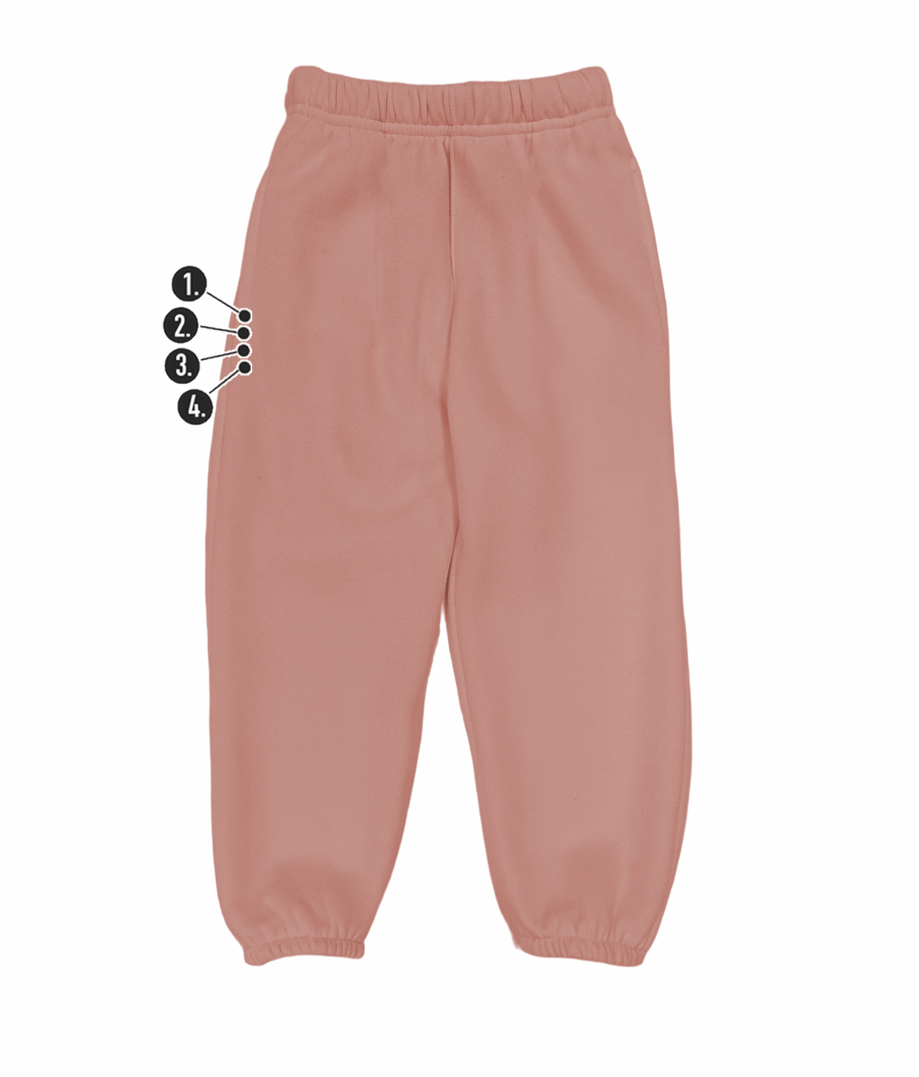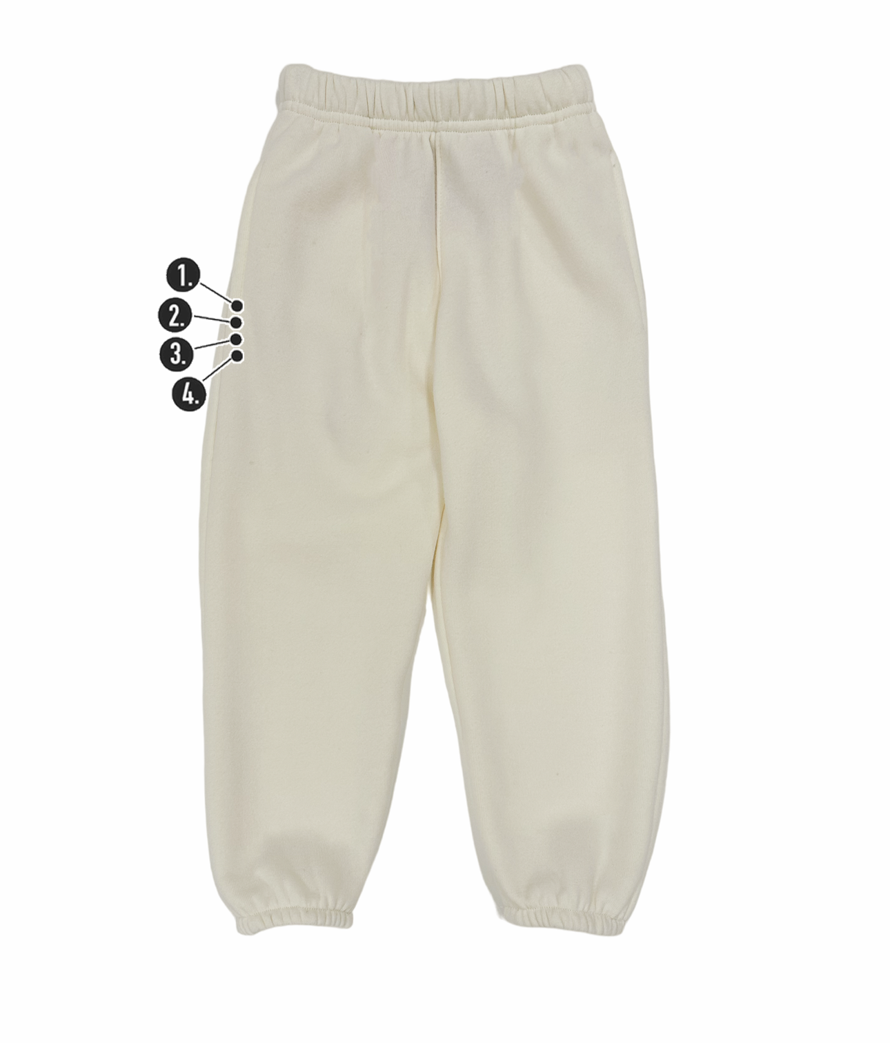 My classic kids sweatpants with front side-slit pockets made from my special Ridiculously Cozy fabric in your choice of cream, terra cotta or charcoal.