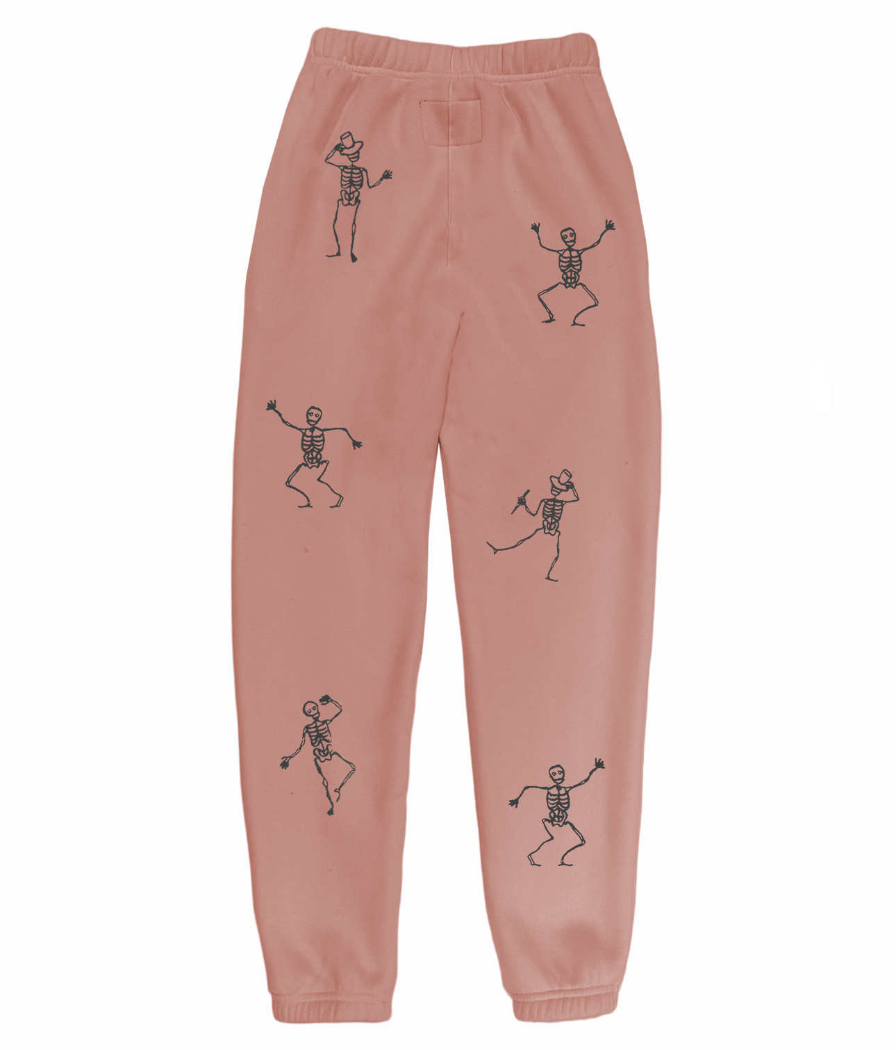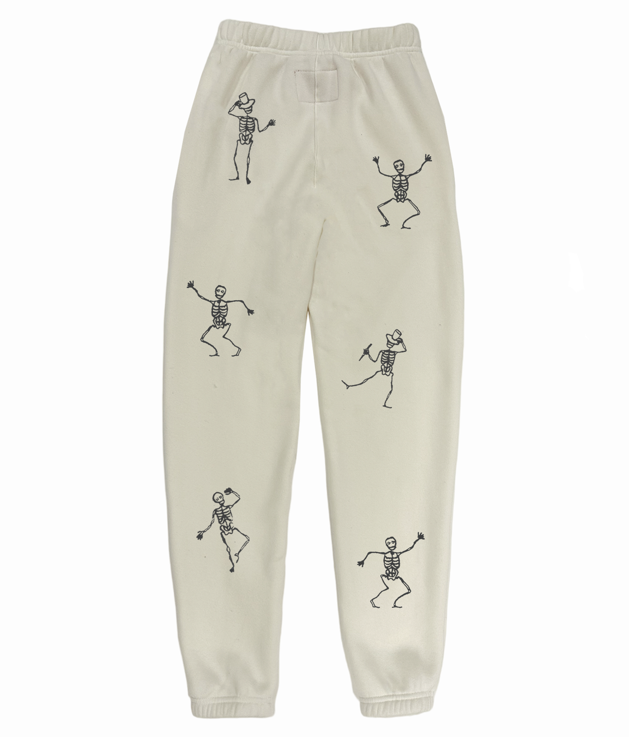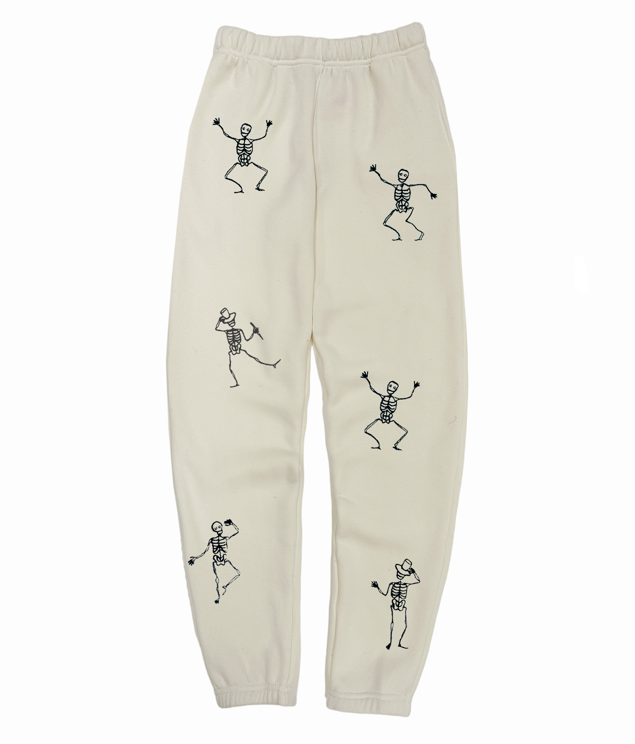 My classic women’s sweatpants with front side-slit pockets made from my special Ridiculously Cozy fabric in your choice of cream, terra cotta or charcoal. Featuring my exclusive exclusive Dancing Skeletons embroidery sprinkled all over.