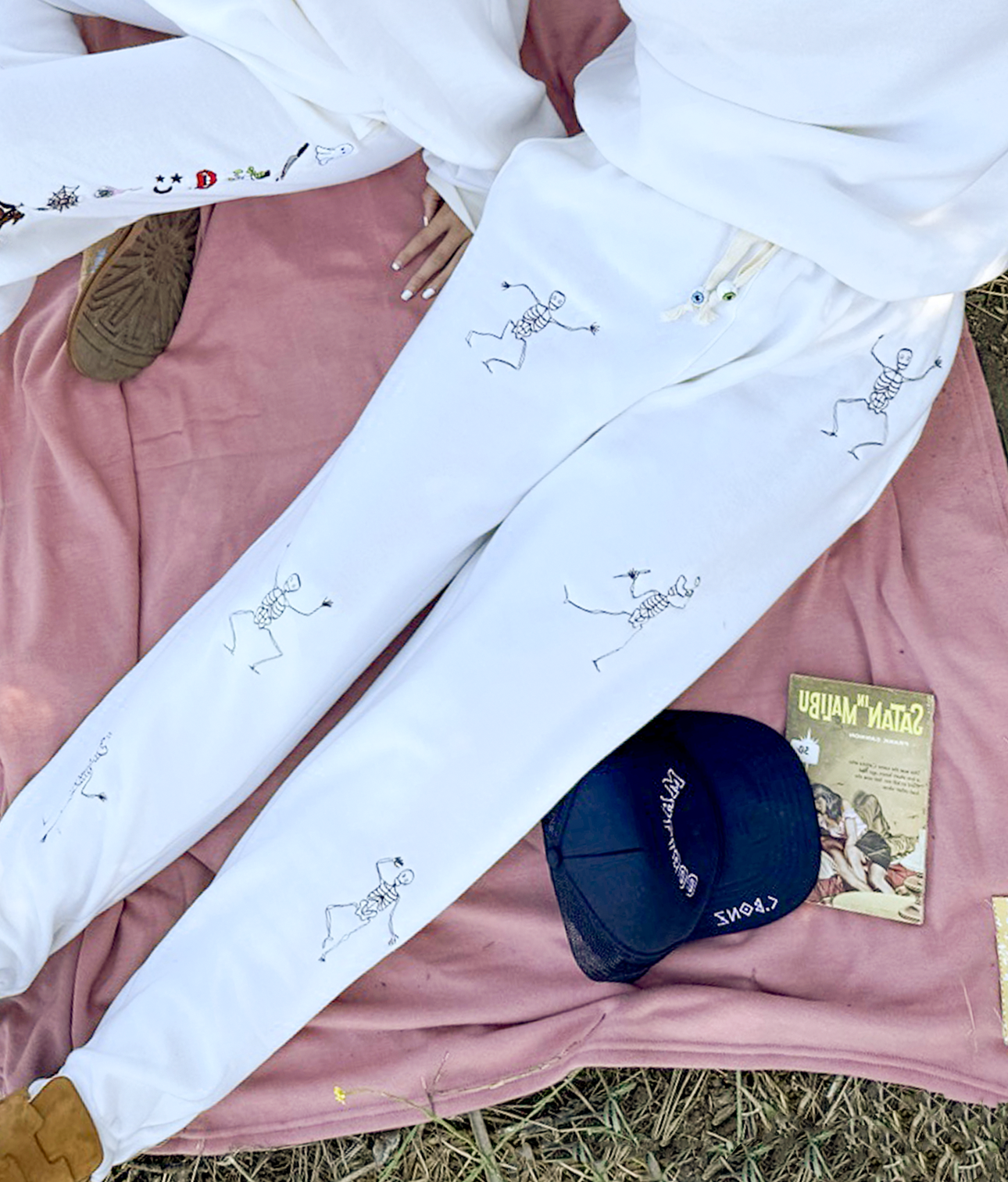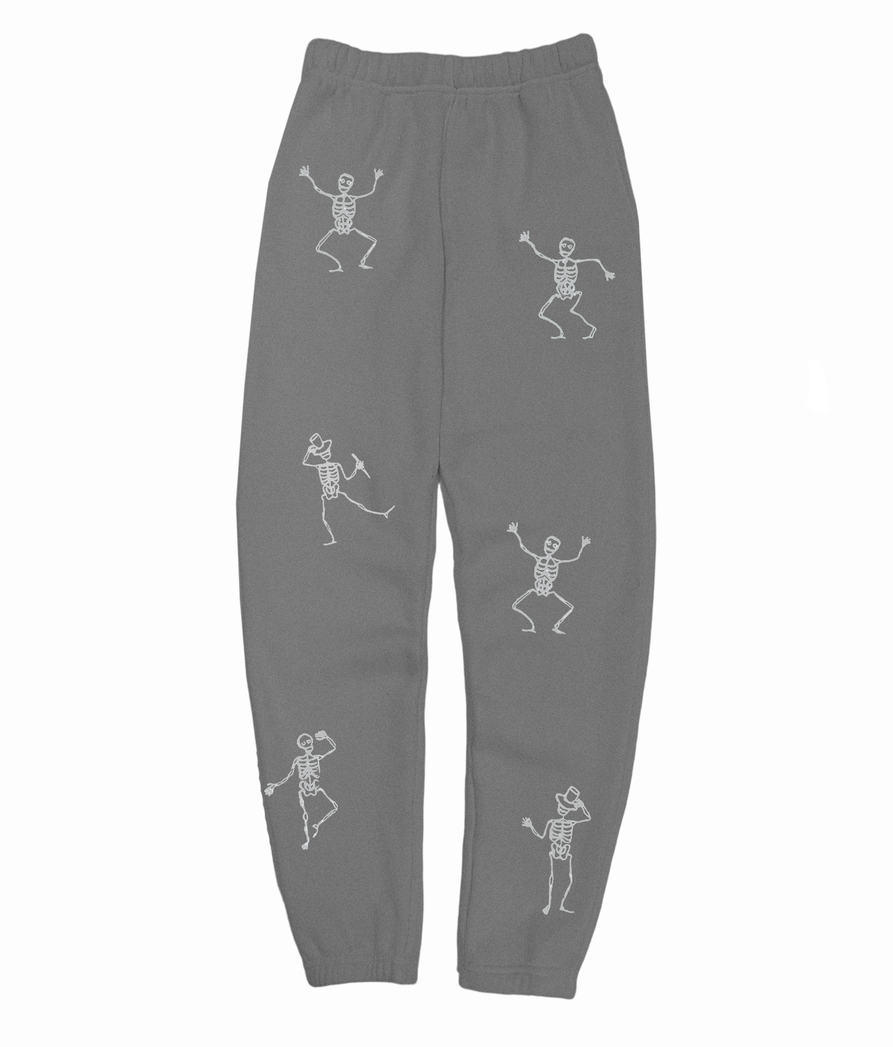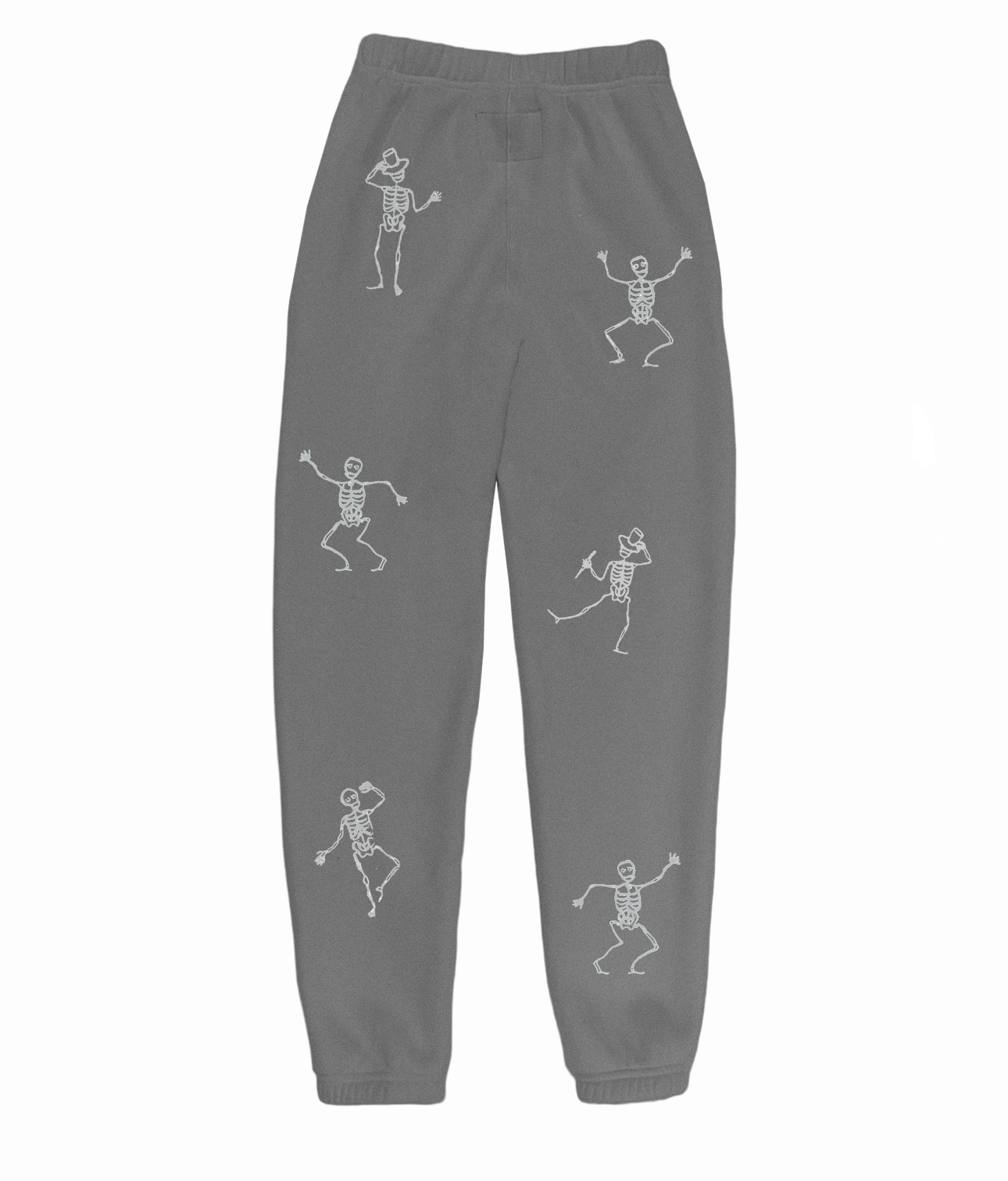 My classic women’s sweatpants with front side-slit pockets made from my special Ridiculously Cozy fabric in your choice of cream, terra cotta or charcoal. Featuring my exclusive exclusive Dancing Skeletons embroidery sprinkled all over.