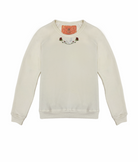My classic women’s crewneck pullover made from my special Ridiculously Cozy fabric in your choice of terracotta, charcoal or cream. Featuring my exclusive skeleton lounging in roses embroidered on the center neckline.