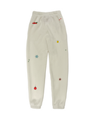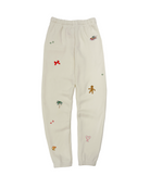 My classic sweatpants with front side-slip pockets made from my special Ridiculously Cozy fabric in our classic cream. Featuring my old truck & tree, snowflake, ornament, stars, mouse sled, bow, gingerbread man, cali xmas tree, candy cane heart and cookie embroidery sprinkled all over