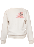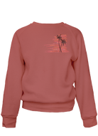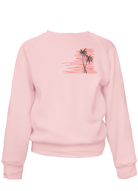 My classic cut crewneck pullover in kids' sizing. Made from my special Ridiculously Cozy fabric in your choice of natural, sunset pink, zuma blue, or terracotta embroidered with my exclusive Sunset Palms design embroidered on the center chest. Made in Malibu, California.