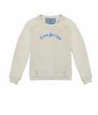 My classic kids crewneck pullover made from my special Ridiculously Cozy fabric in your choice of cream or charcoal. Featuring my exclusive everLAsting design embroidered on the center chest. CUSTOMIZE by adding your city to the collar. Made on demand in Malibu, California