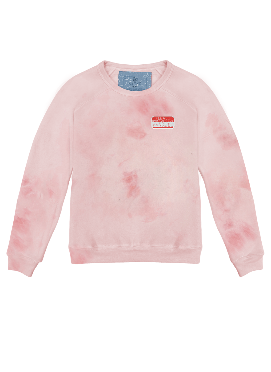 My classic kids crewneck pullover made from my special Ridiculously Cozy fabric in your choice of cream, sunset pink, charcoal or tie dye pink. Featuring my exclusive fragile graphic embroidered on the left chest. Made on demand in Malibu, California