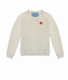 My classic cut crewneck pullover in kids' sizing made from my special Ridiculously Cozy fabric in cream. Featuring my exclusive Happy Firefighter design. Made on demand in Malibu, California