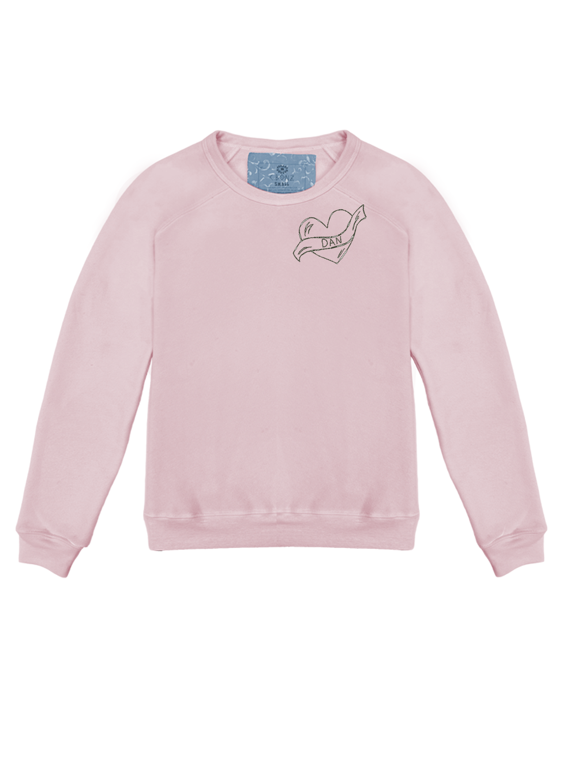 CUSTOMIZE ME!! My classic kids crewneck pullover with front side-slit pockets made from my special Ridiculously Cozy fabric in your choice of cream, sunset pink, charcoal or tie dye pink. Featuring my exclusive lovers heart design embroidered on the left chest. Add the name of your choice! Max letters 11. Made on demand in Malibu, California