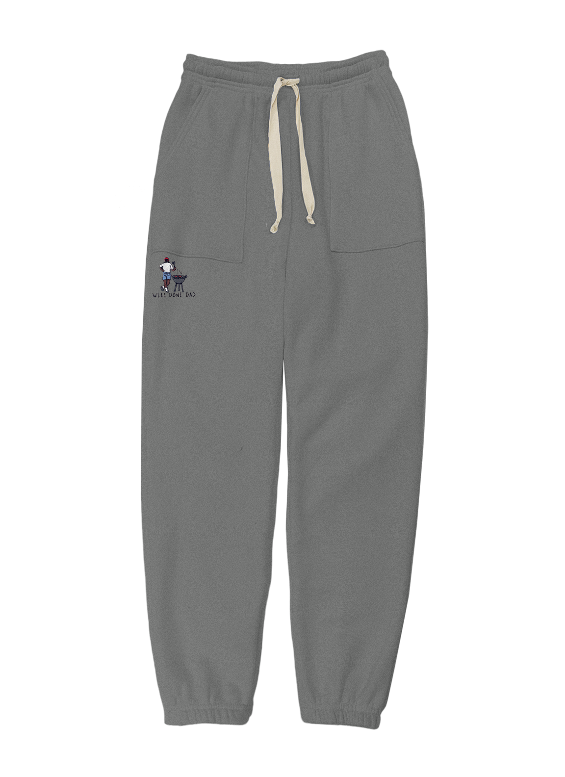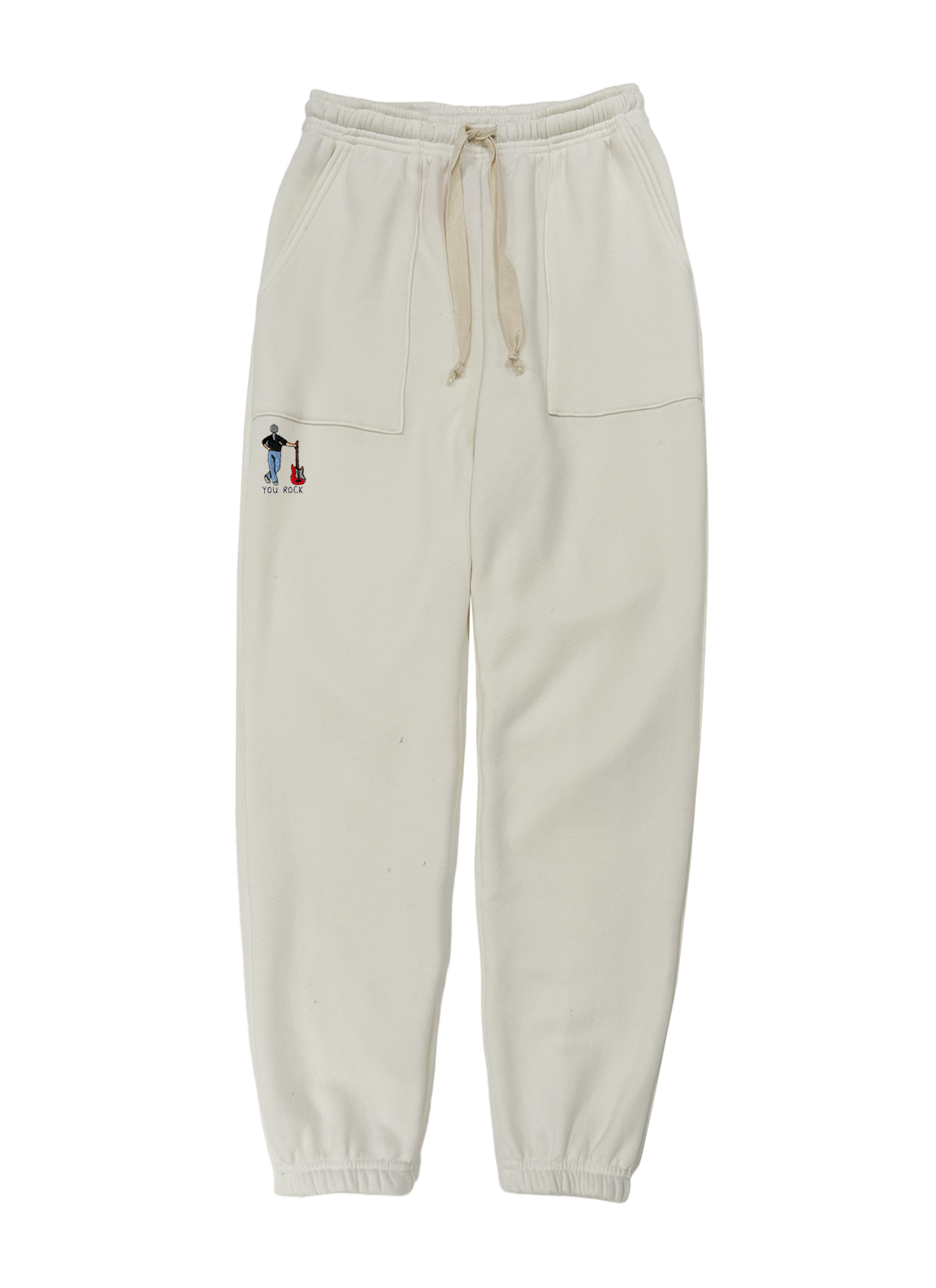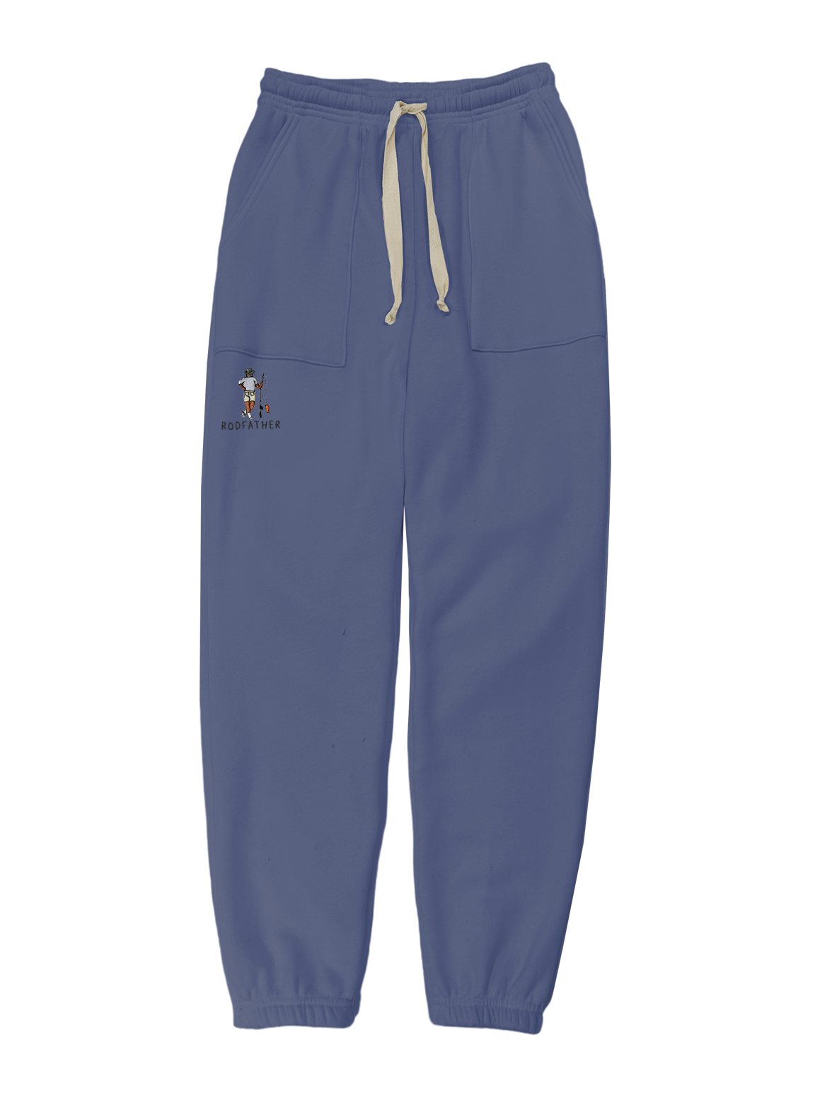 Men's sweatpants with a fold-over waistband, drawstring, and flat front pockets made from my special Ridiculously Cozy fabric in your choice of cream, charcoal, Zuma blue, or sand.