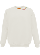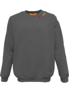 Men's pullover made from my special Ridiculously Cozy fabric in your choice of cream or charcoal featuring 6 happy faces in a rainbow gradient embroidered around the left side of the collar.