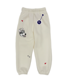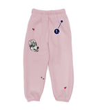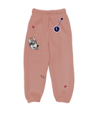 A custom one of a kind wearable keepsake of your magical moments on our classic sweatpants in kid's sizing made with my Ridiculously Cozy fabric in cream, sunset pink, zuma blue, charcoal or terracotta. Includes 1 custom portrait with pops of color, your zodiac sign, hearts and stars embroidery randomly sprinkled and 2 choices from the menu. Add up to 2 additional pet portraits. Additional embroidery can be added, email me for details.