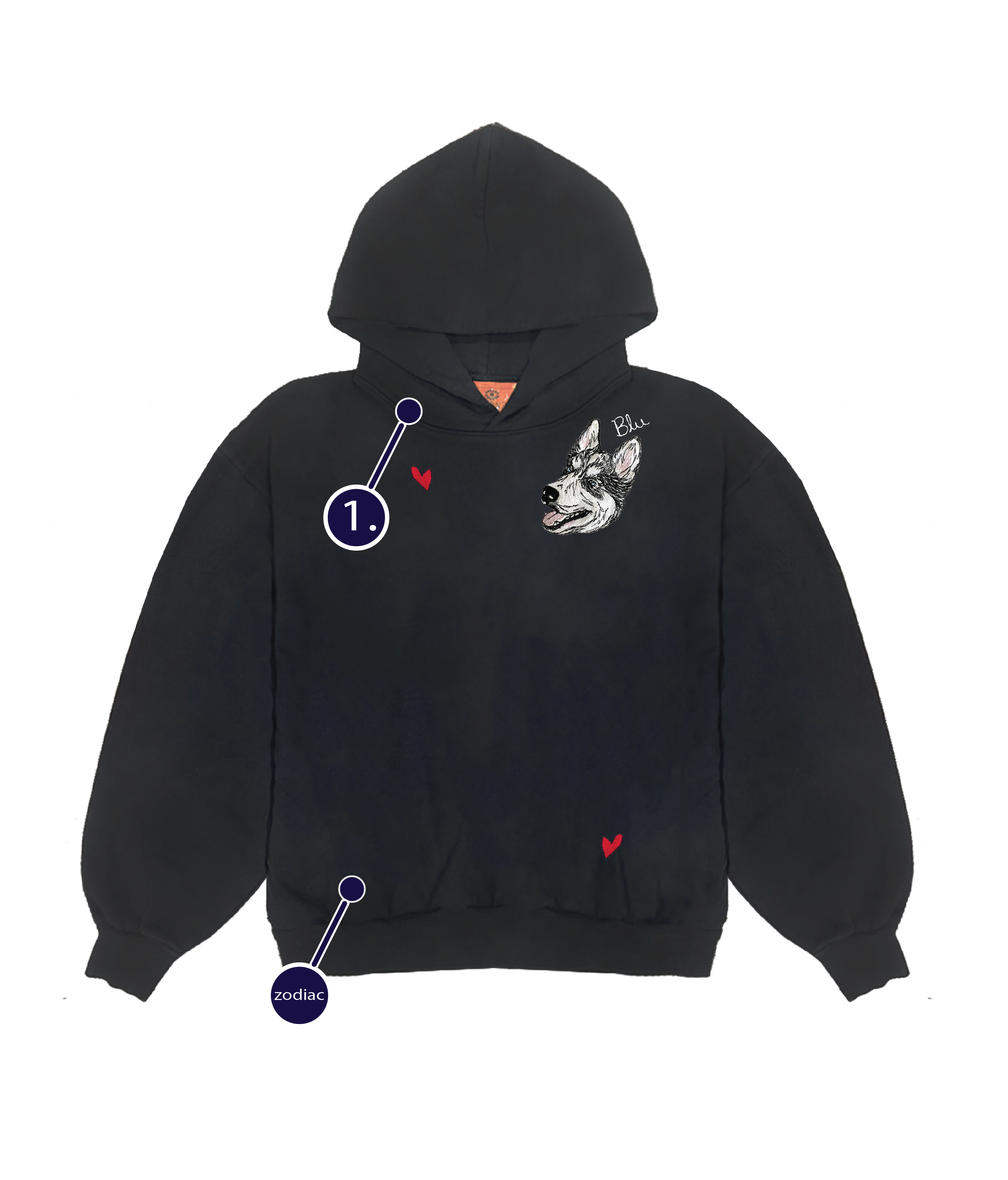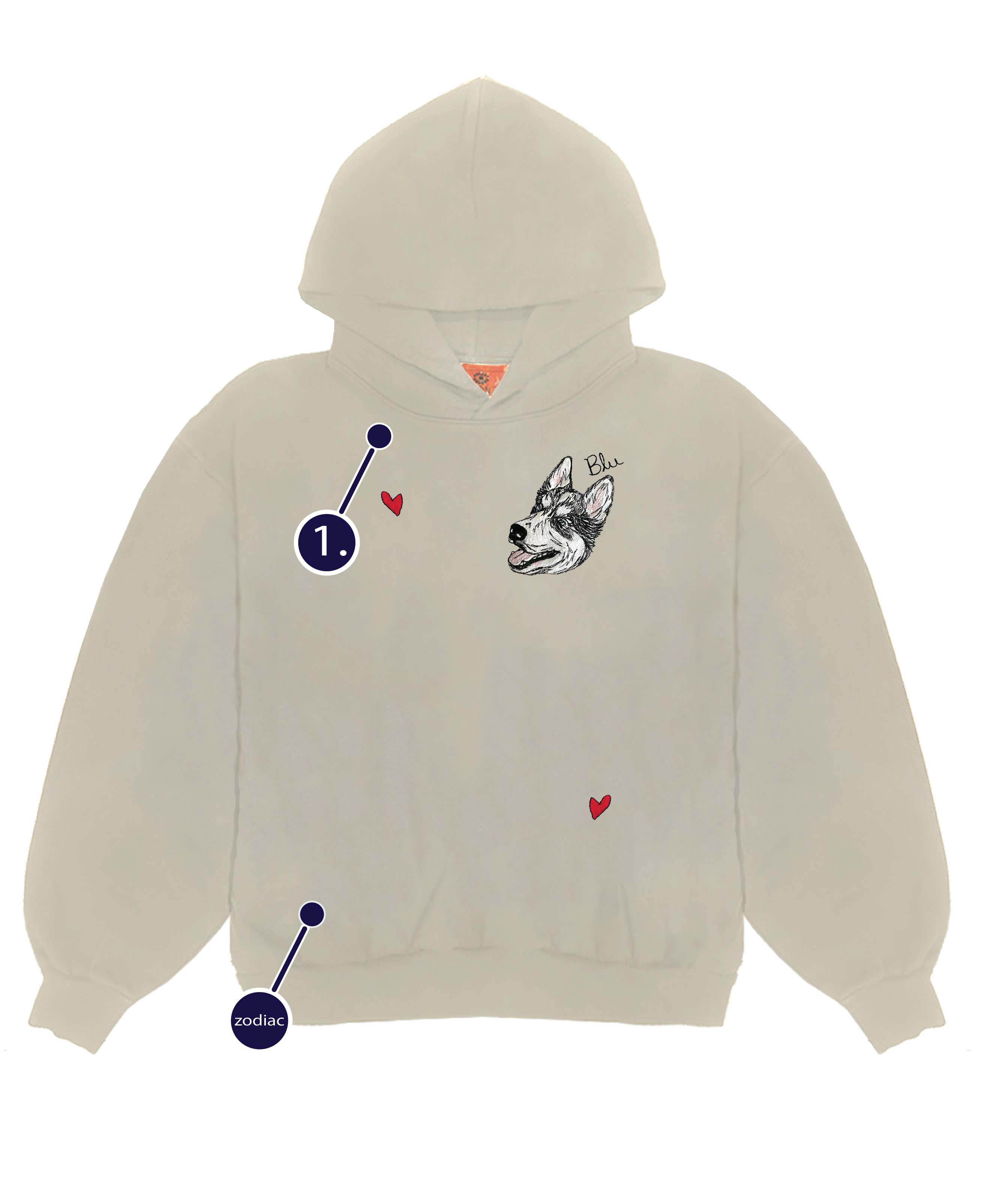 My new oversized women’s ultra premium heavy fleece hoodie in 100% cotton with a voluminous, bouncy silhouette with side pockets offers a modern look perfect for lounging or wearing on-the-go. Featuring a Custom Pet Portrait of your pet (or pets) in my exclusive Doodle style and their name(s) embroidered on the center chest. Upload your pet's photo and input their name below.
