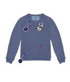 A custom one-of-a-kind wearable keepsake of your magical moments on our classic ultra-cozy pullover in kids' sizing. Available in cream, sunset pink, terracotta, charcoal or zuma blue. Includes 1 custom portrait with pops of color, your zodiac sign, hearts and stars embroidery randomly sprinkled and 2 choices from the menu. Additional embroidery can be added; email me for details.