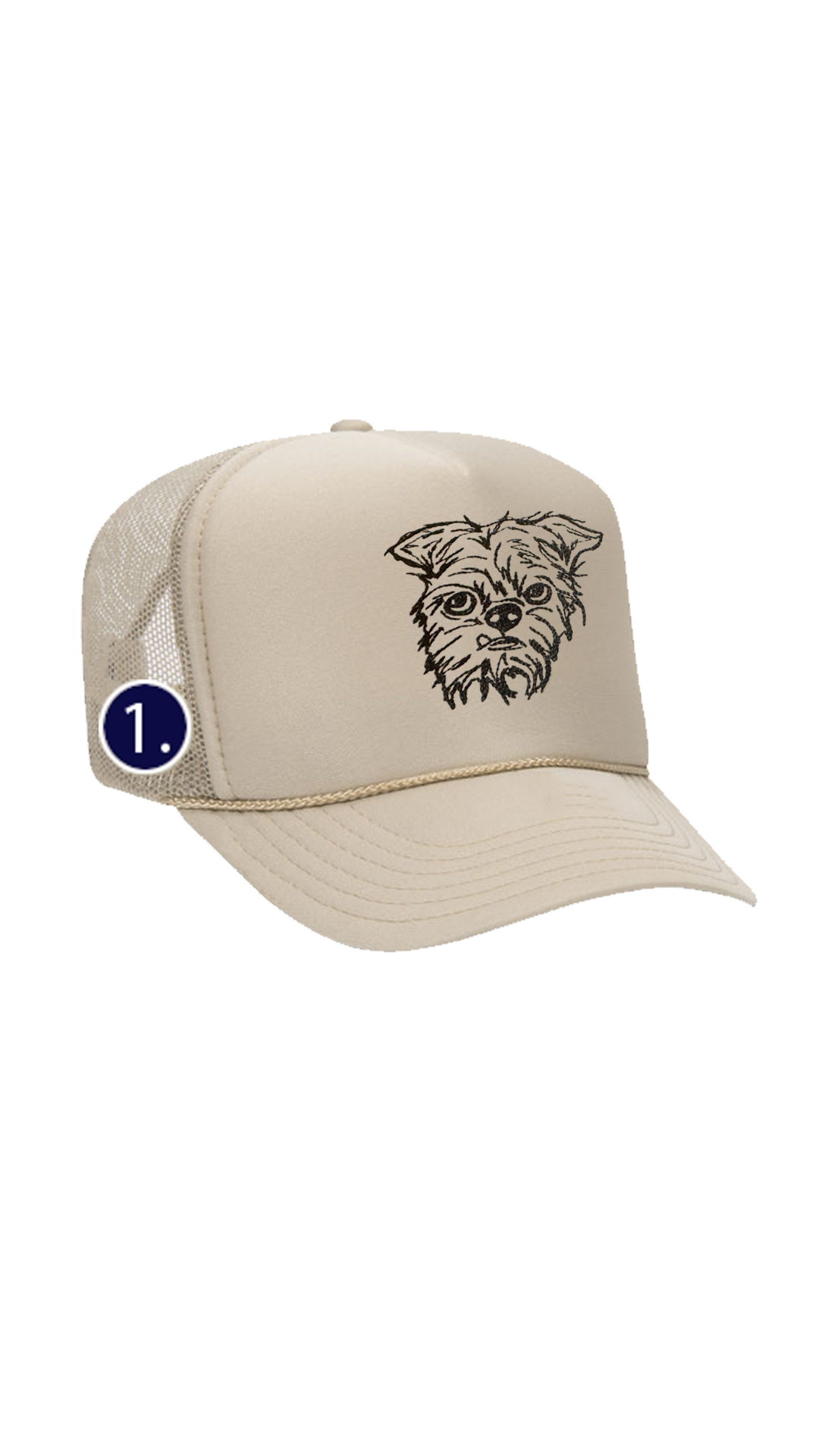 Custom Pet Portrait Trucker Hat with Mini Embroidery
