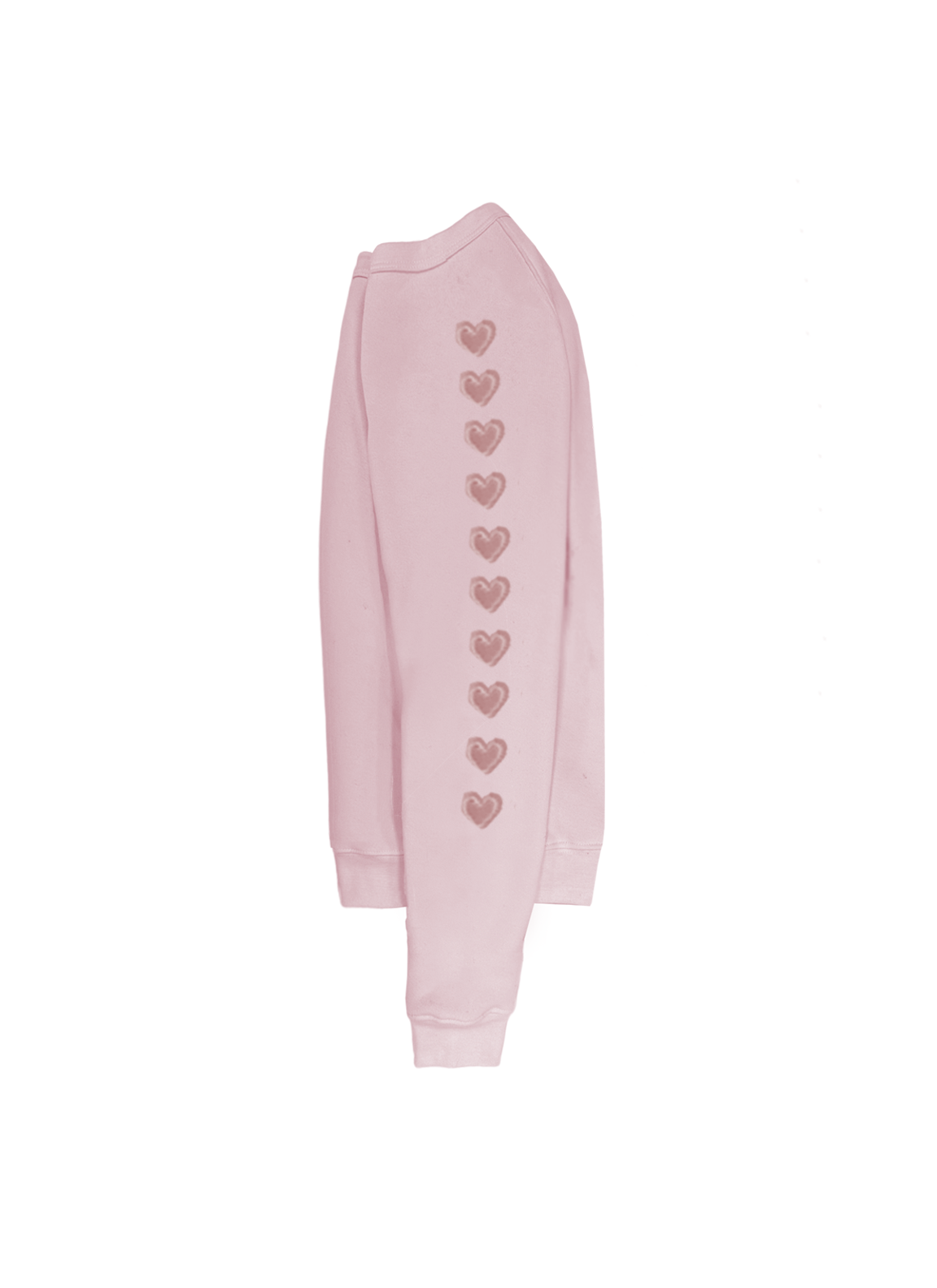 My classic women’s crewneck pullover made from my special Ridiculously Cozy fabric in your choice of cream, sunset pink, charcoal or tie dye pink. Featuring my exclusive heart cutwork design on the sleeve.