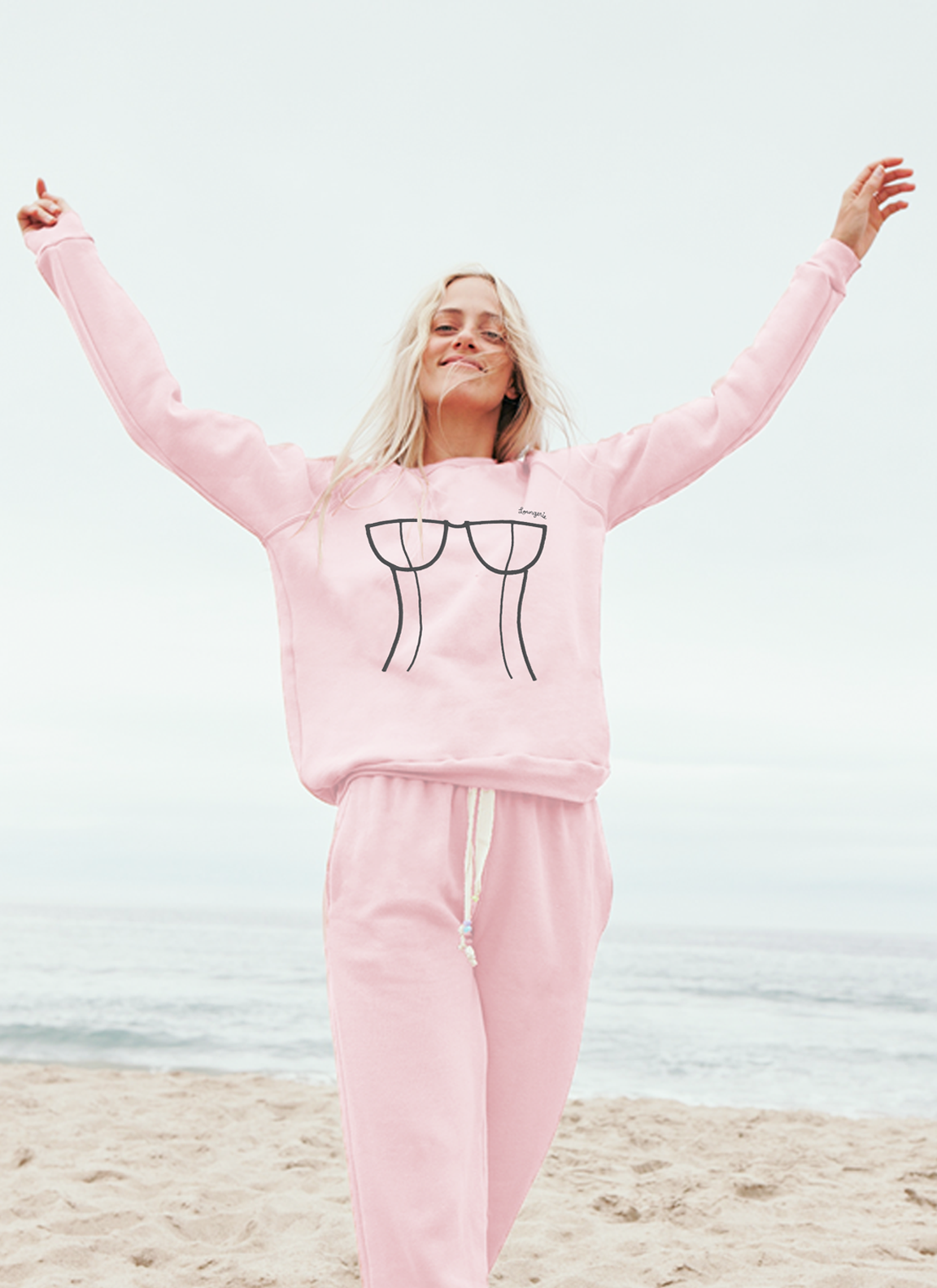 My classic cut crewneck pullover in women’s sizing made from my special Ridiculously Cozy fabric in your choice of cream, sunset pink, charcoal, or pink tie dye. Featuring my exclusive Lounge-rie silhouette design. Made on demand in Malibu, California
