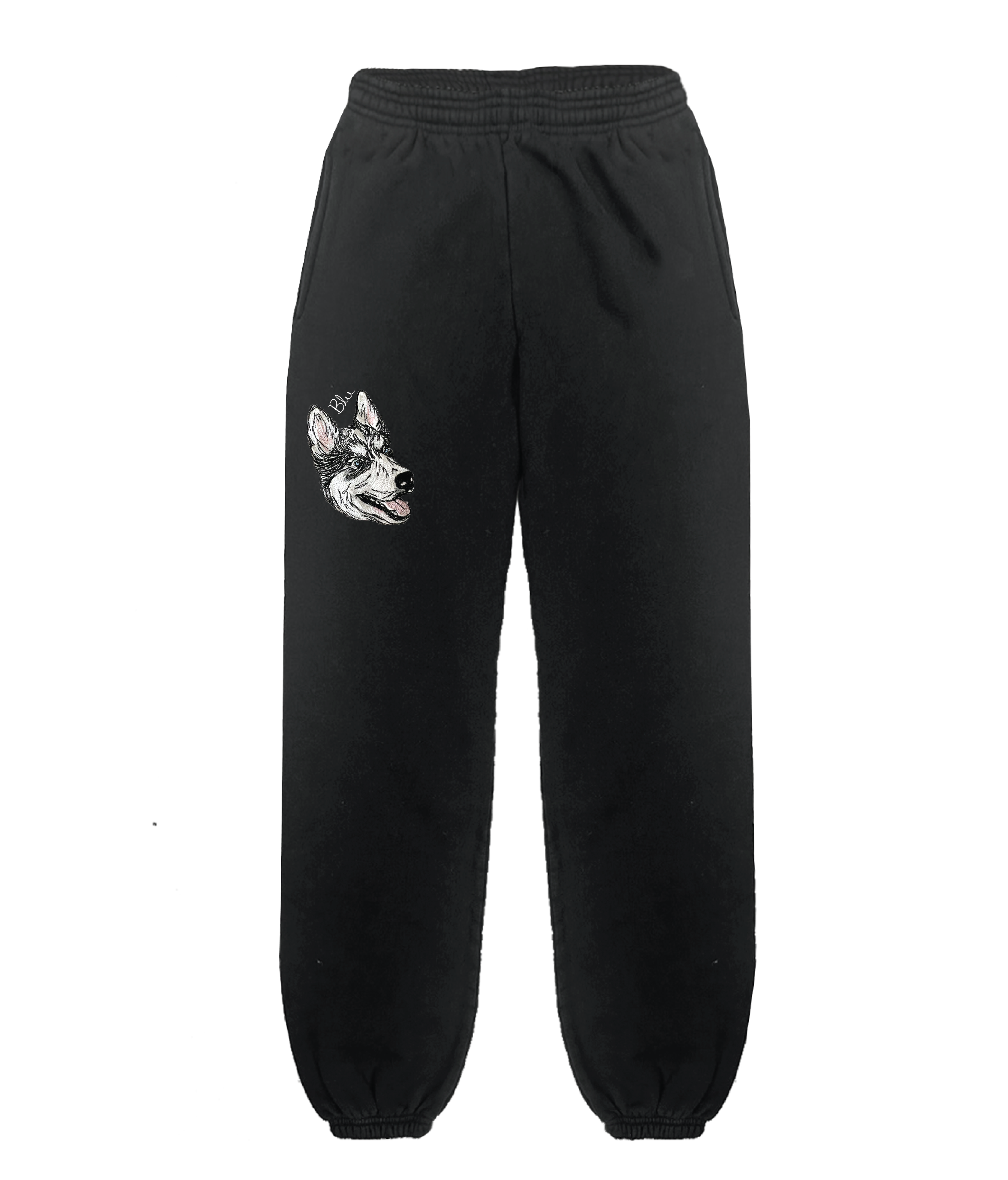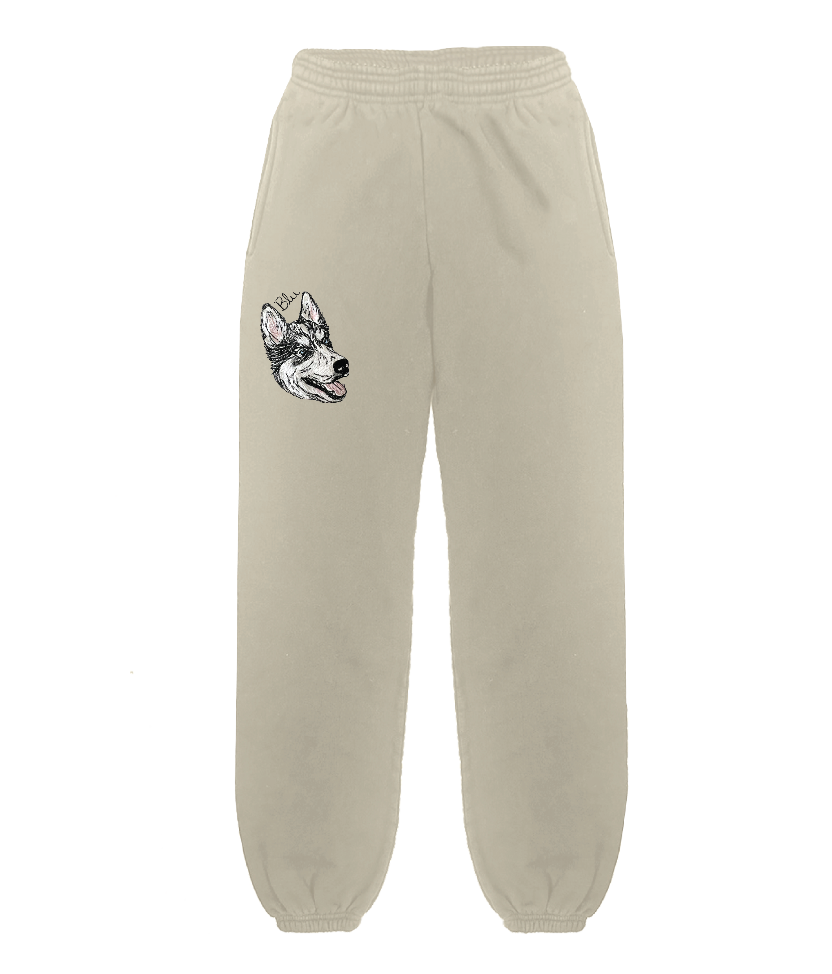 The voluminous, bouncy silhouette with elastic waistband and cuff, side pockets, and back pocket, offers a modern look perfect for lounging or wearing on-the-go. Featuring a Custom Pet Portrait of your pet (or pets) in my exclusive Doodle style and their name(s) embroidered on the center chest. Upload your pet's photo and input their name below. Made to order in Malibu.