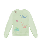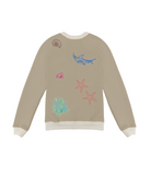 My classic cut crewneck pullover in women’s sizing made from my special Ridiculously Cozy fabric in your choice of cream, oat w/cream trim, sunset pink or seafoam. Featuring my exclusive sea life sprinkle design. Made on demand in Malibu, California