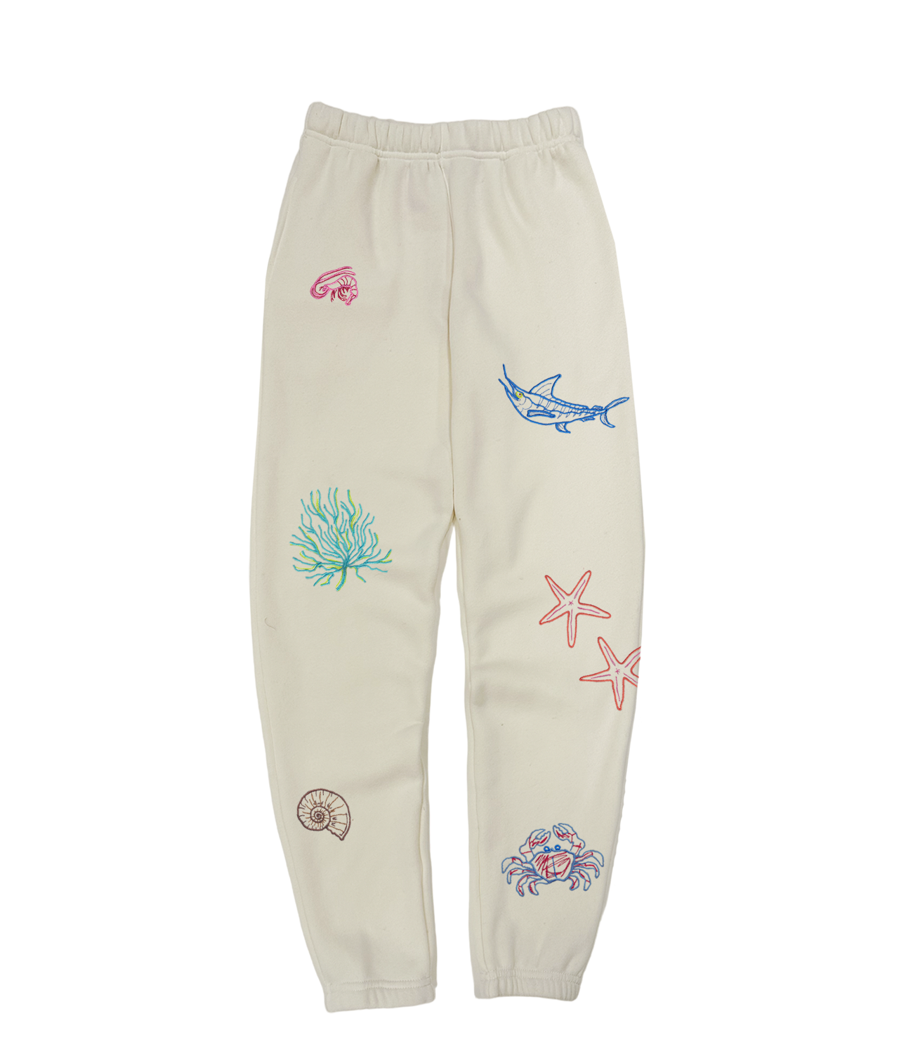 My classic women’s sweatpants with front side-slit pockets made from my special Ridiculously Cozy fabric in your choice of cream, oat, sunset pink or seafoam. Featuring my exclusive sea life sprinkle design embroidered on the lower legs and embroidered back pocket. Made on demand in Malibu, California