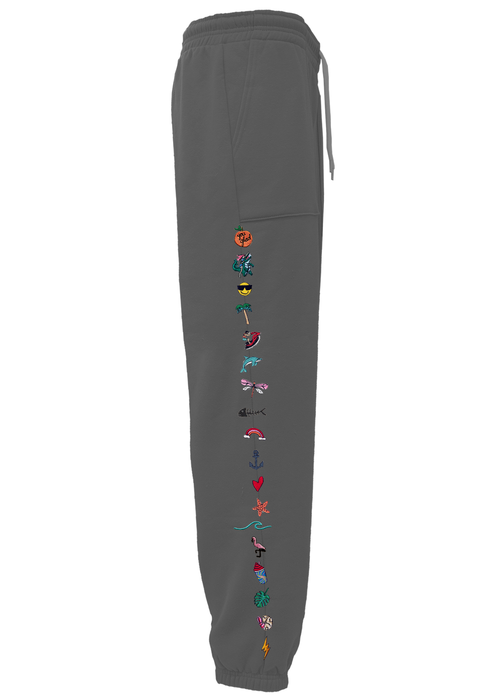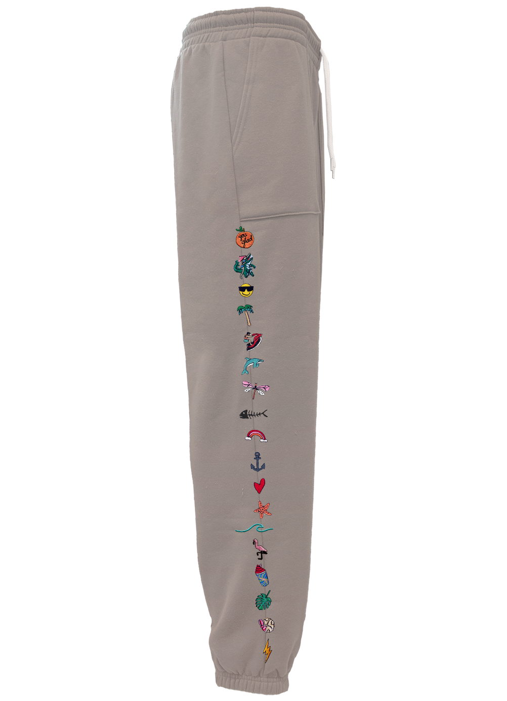 Women's oversized sweatpants featuring a fold-over waistband with drawstring and large front pockets. Made from my special Ridiculously Cozy fabric in your choice of charcoal, oatmeal, or cream. Featuring exclusive Florida themed embroidery down the right leg.