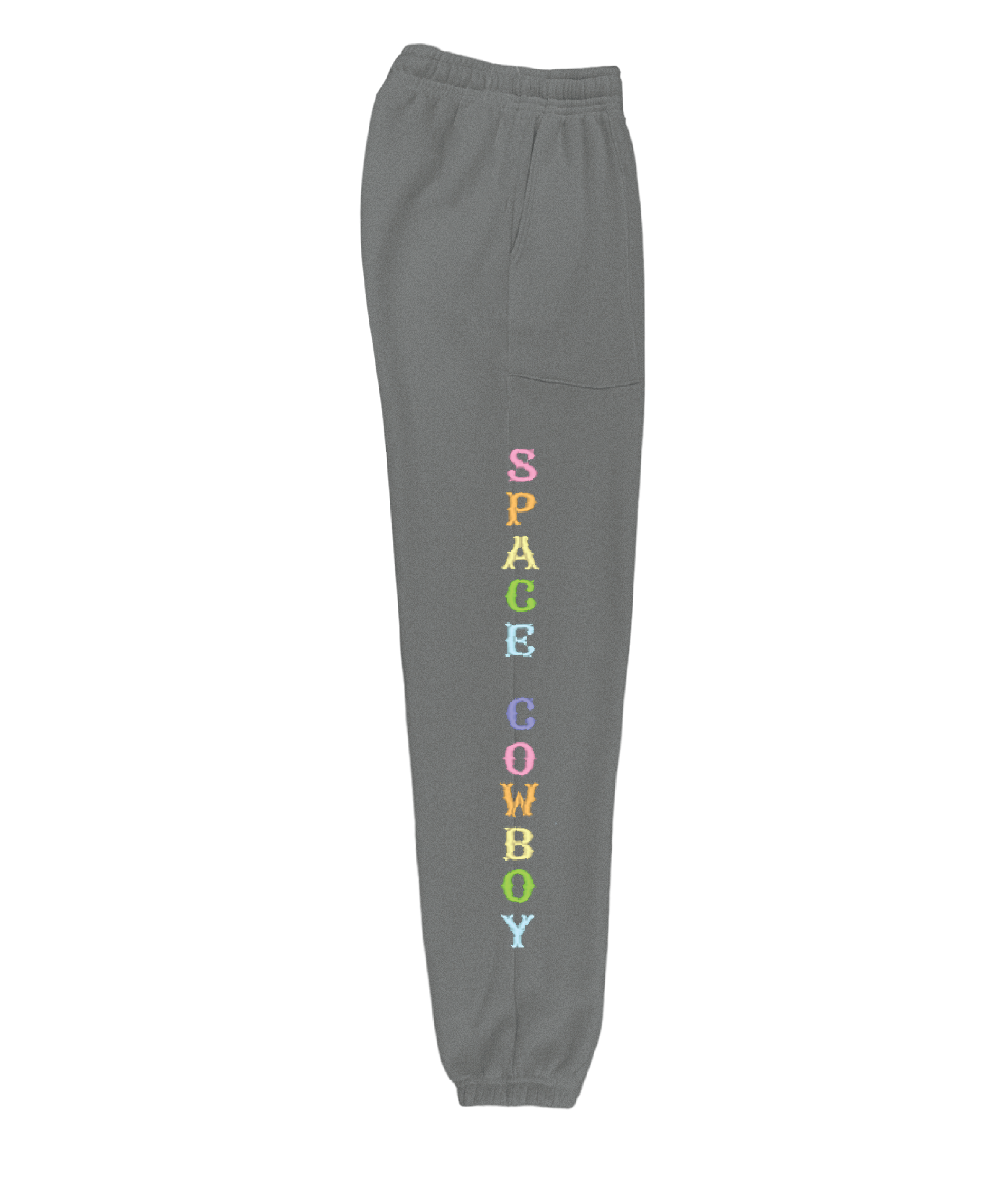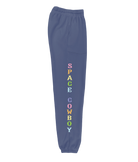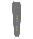 Women's oversized sweatpants with a fold-over waistband, drawstring and large front pockets featuring my exclusive "space cowboy" embroidery art along the right leg and stars on the left leg.