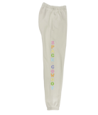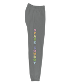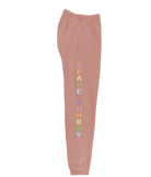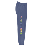 My classic sweatpants with front side-slip pockets made from my special Ridiculously Cozy fabric in your choice of charcoal, cream, sunset pink, Zuma blue, or terracotta featuring "space cowboy" along the right leg and stars on the left leg.