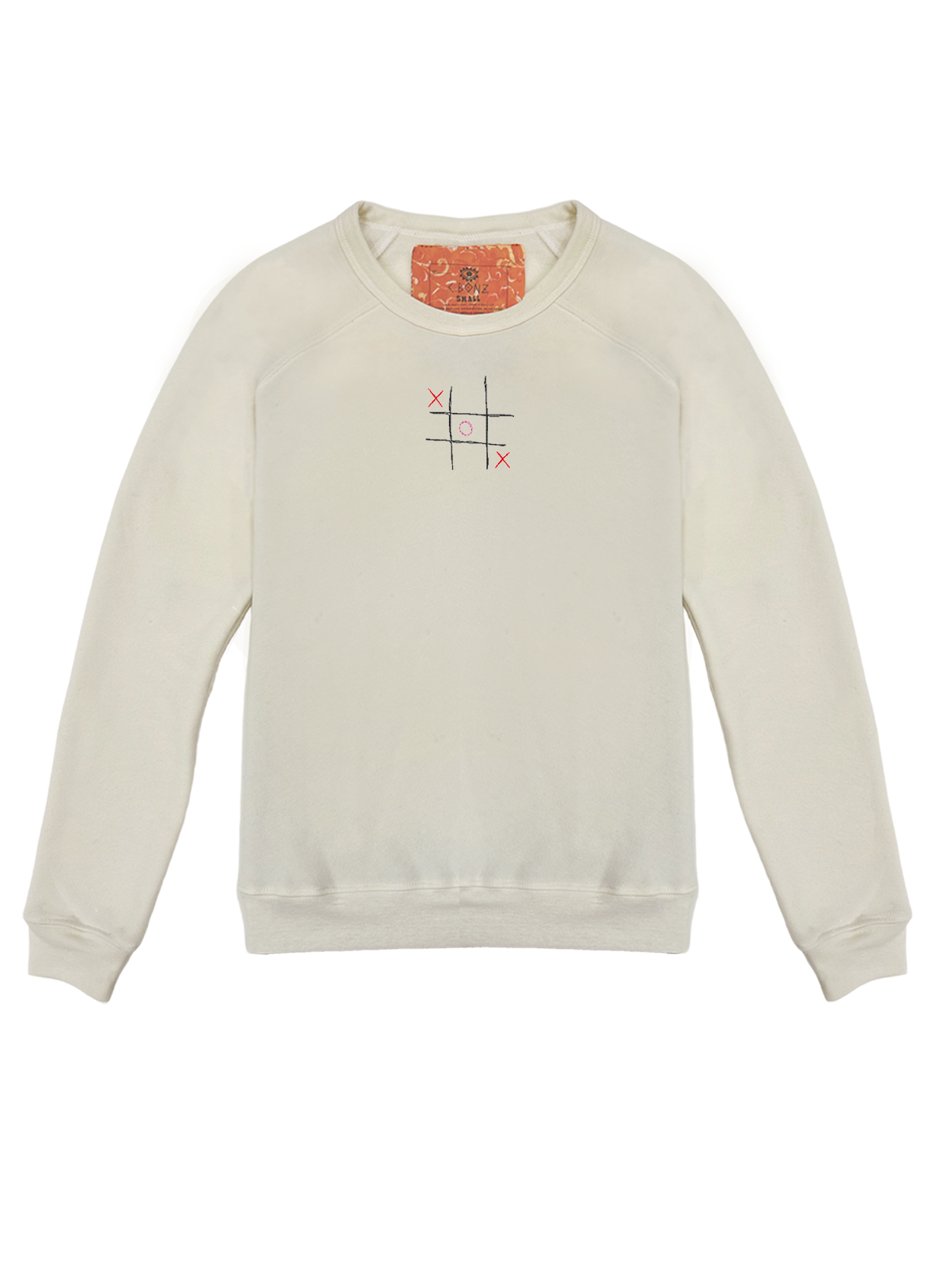 My classic women’s crewneck pullover made from my special Ridiculously Cozy fabric in your choice of cream, sunset pink, charcoal or tie dye pink. Featuring my exclusive XOX tic tac toe design embroidered on the