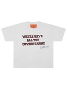 My women's Malibu Tee is perfectly sized between a crop top and a regular tee, offering a length that is just right- not too short and not too long. Made from breathable 100% cotton, it delivers a sporty relaxed fit showcasing my exclusive Where Have All The Cowboys Gone (Surfing) exclusive embroidery design. Made to order in Malibu.