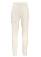 My classic sweatpants with front side-slip pockets made from my special Ridiculously Cozy fabric in your choice of charcoal, cream, sunset pink, terracotta, or Zuma blue featuring my barbwire embroidery on the right leg.