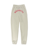 My classic sweatpants with front side-slip pockets made from my special Ridiculously Cozy fabric in our classic cream. Featuring my embroidered Naughty and Nice design on the booty and right thigh. Made on demand in Malibu, California.