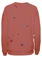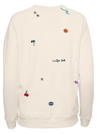 My classic cut pullover made from my special Ridiculously Cozy fabric in your choice of charcoal, cream, sunset pink, terracotta, or zuma blue featuring my exclusive Malibu mini designs embroidered in thoughtful spacing around the garment. Made on demand in Malibu, California