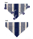 Our embroidered dog bandanas are made for easy wear + extra flair with double-sided patterns. Just slide them over your pup’s collar for a comfy, secure fit. No knots, no hassle.