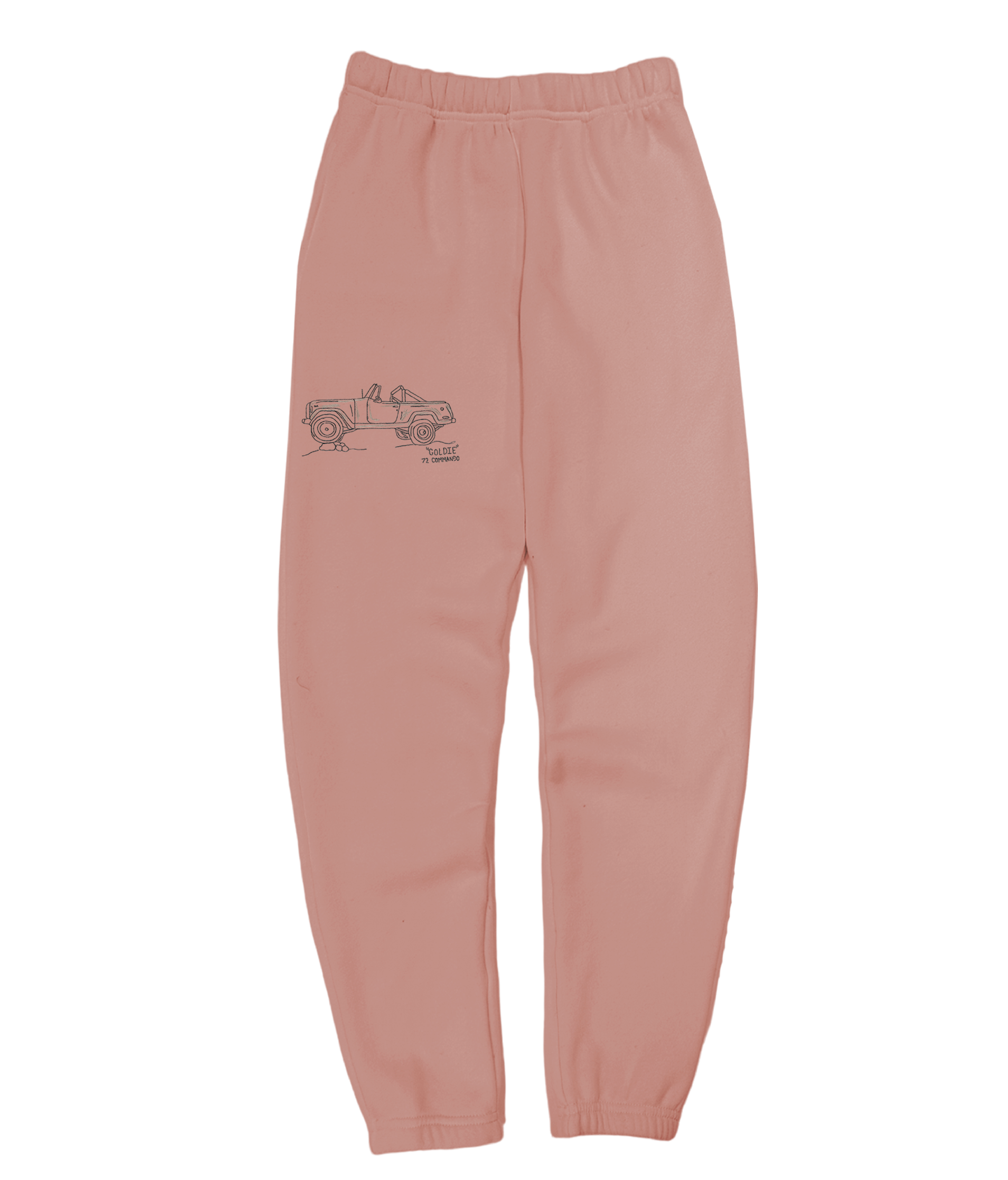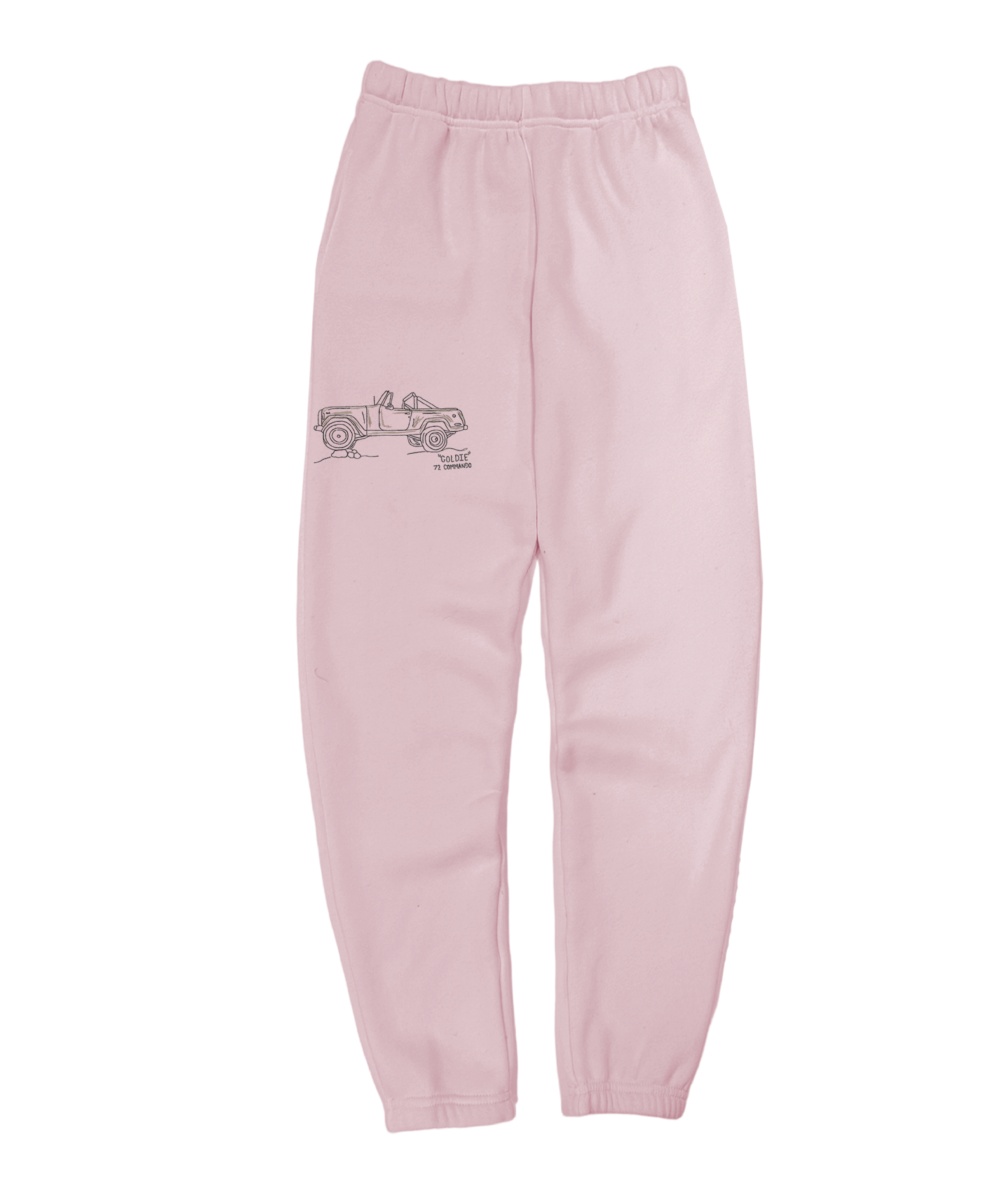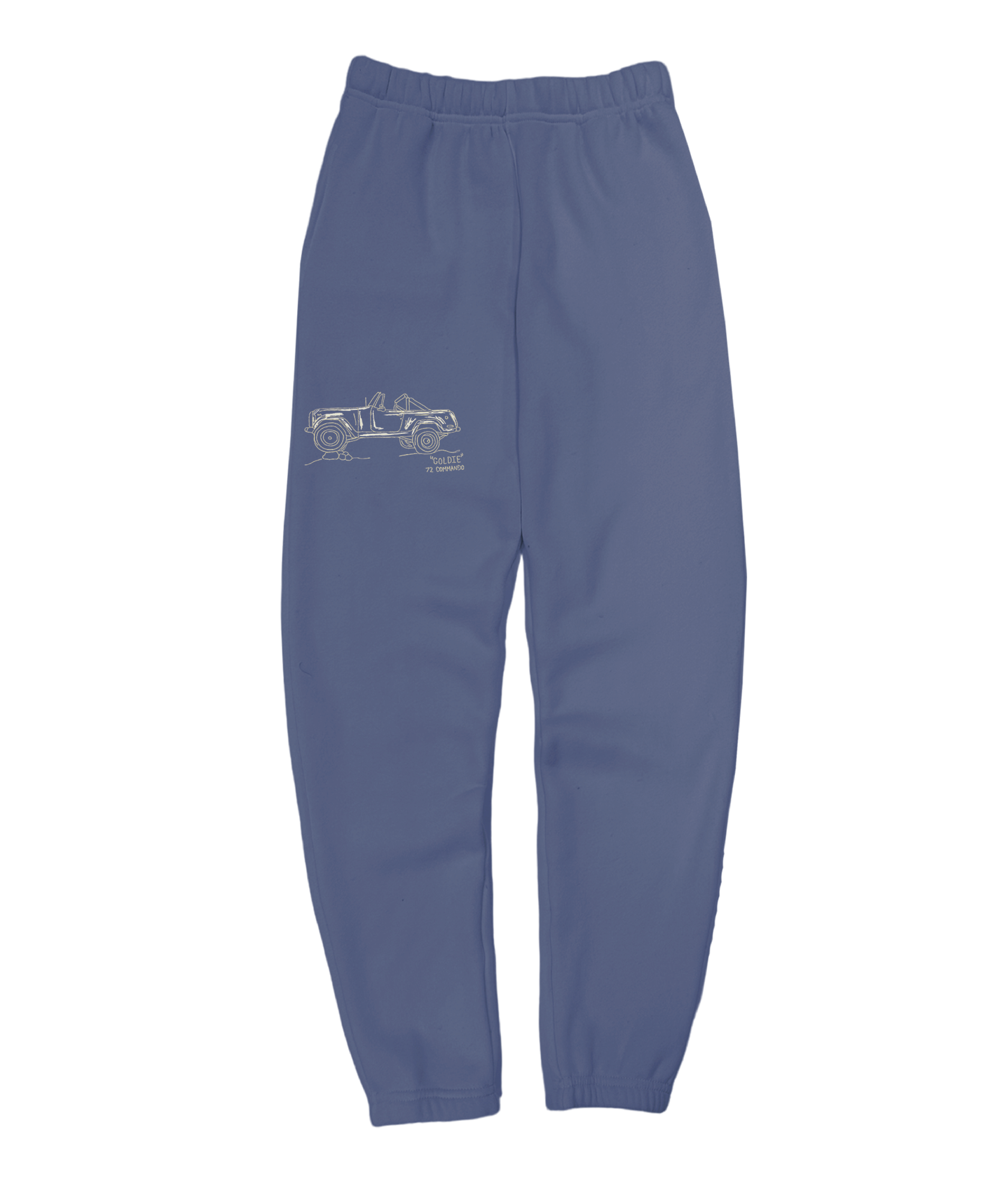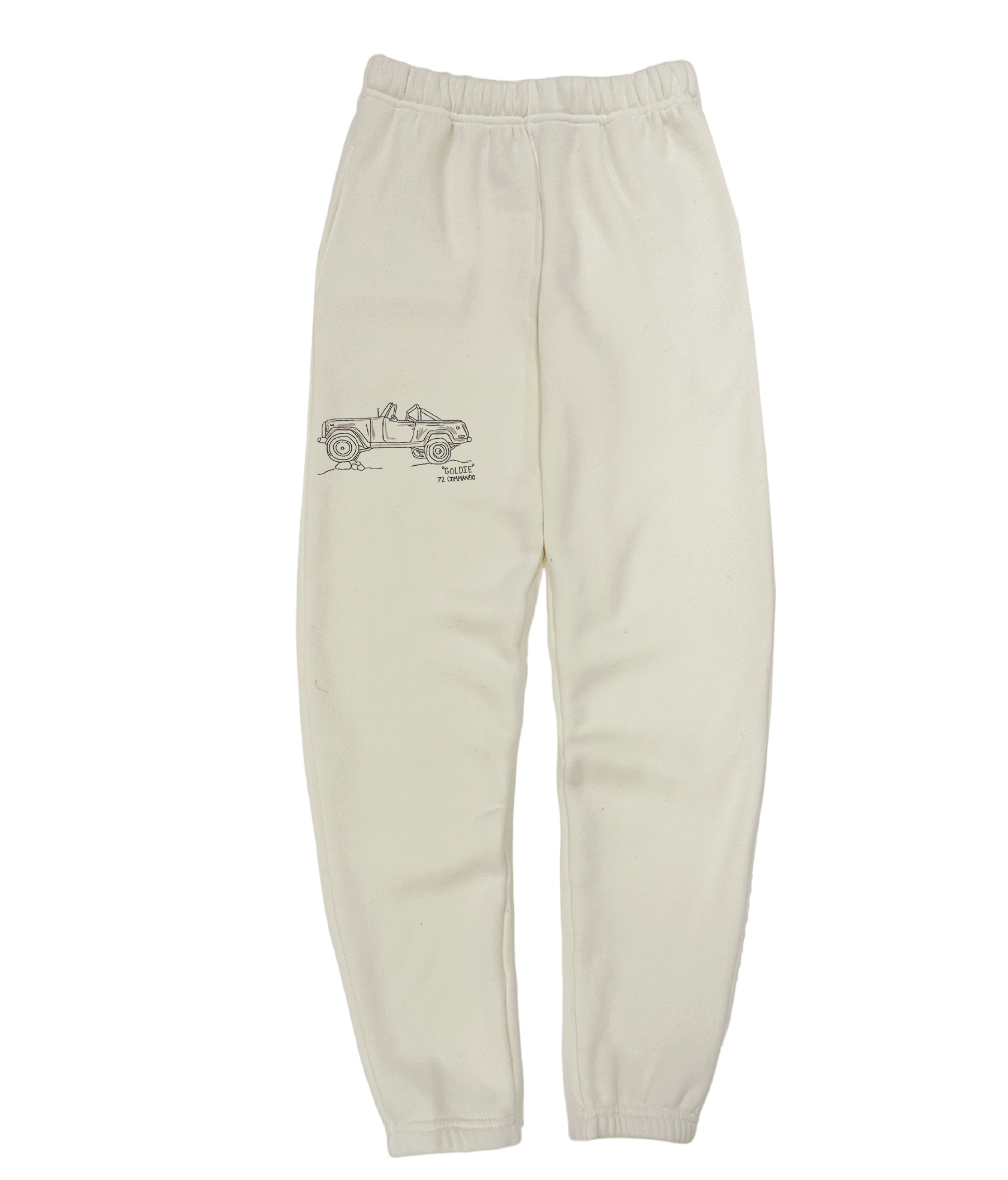 My classic sweatpants with front side-slip pockets made from my special Ridiculously Cozy fabric in your choice of cream, sunset pink, terracotta, charcoal or zuma blue. Embroidered with a custom hand-drawn embroidery design of your car with your car name (or other phrase) below the illustration. These sweats are a perfect gift for the car enthusiast in your life!