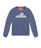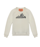 My classic cut crewneck pullover made from my special Ridiculously Cozy fabric in your choice of cream, sunset pink, charcoal, terracotta, or Zuma blue featuring a custom hand drawn embroidery design of your home (or other meaningful building) with your house number (or other phrase) on the left lower shoulder seam. Upload a picture of your home and input the number with the options below.