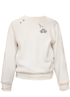 My class cut crewneck pullover in kids' sizing. Made from my special Ridiculously Cozy fabric in your choice of cream, sunset pink, zuma blue, or terracotta customized with your Zodiac Constellation and Sign embroidered on the left chest and 2 stars embroidered near the right collar. Input your zodiac sign in the text box below.