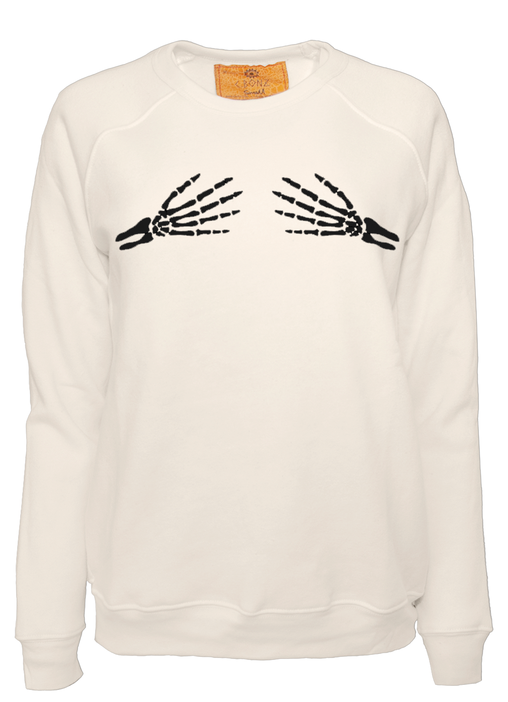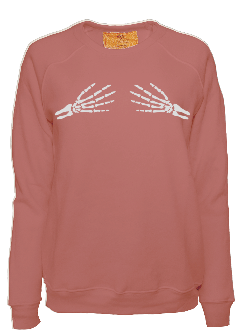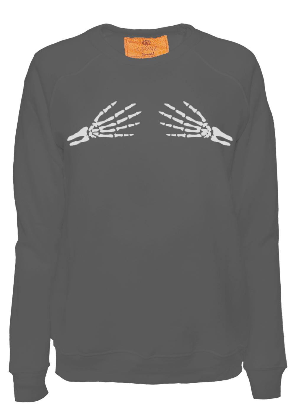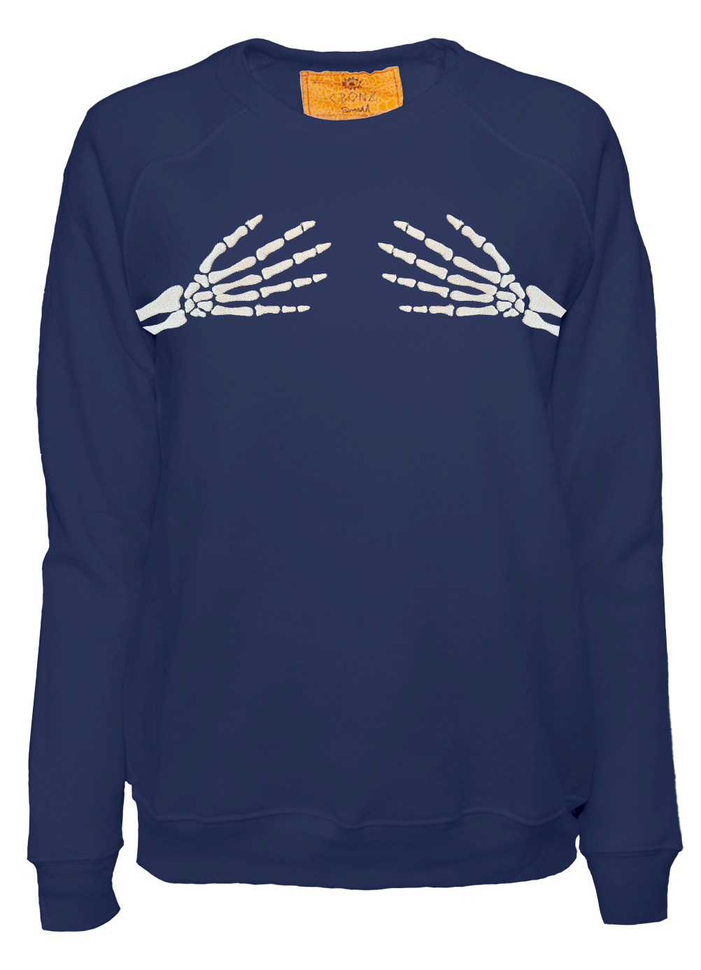 My classic crewneck pullover made in the U.S.A. featuring two large skeleton hands embroidered over the chest.