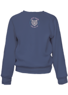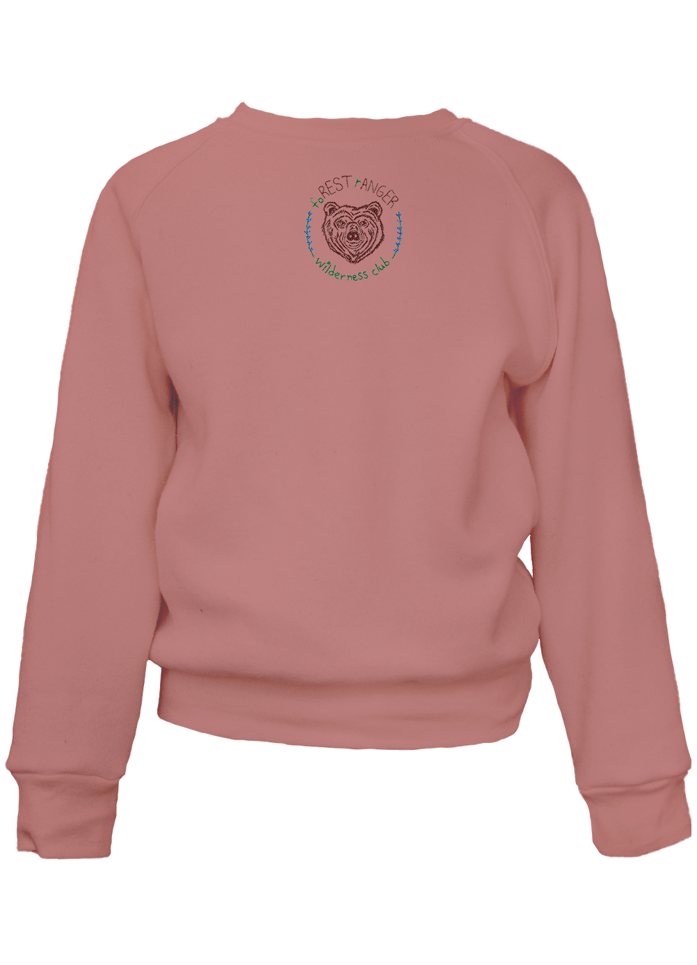 My classic cut crewneck pullover in kid's sizing made from my special Ridiculously Cozy fabric in your choice of cream, zuma blue, sunset pink, or terracotta featuring my exclusive hand drawn foREST rANGER wilderness club and bear embroidery.