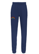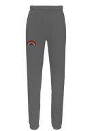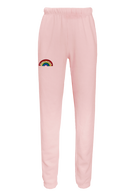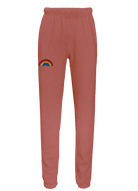 Women's classic sweatpants with front slip style pockets made from my special Ridiculously Cozy fabric in your choice of charcoal, cream, Zuma blue, terracotta, or sunset pink featuring my exclusive SOMEWHERE in the Rainbow on the right thigh.