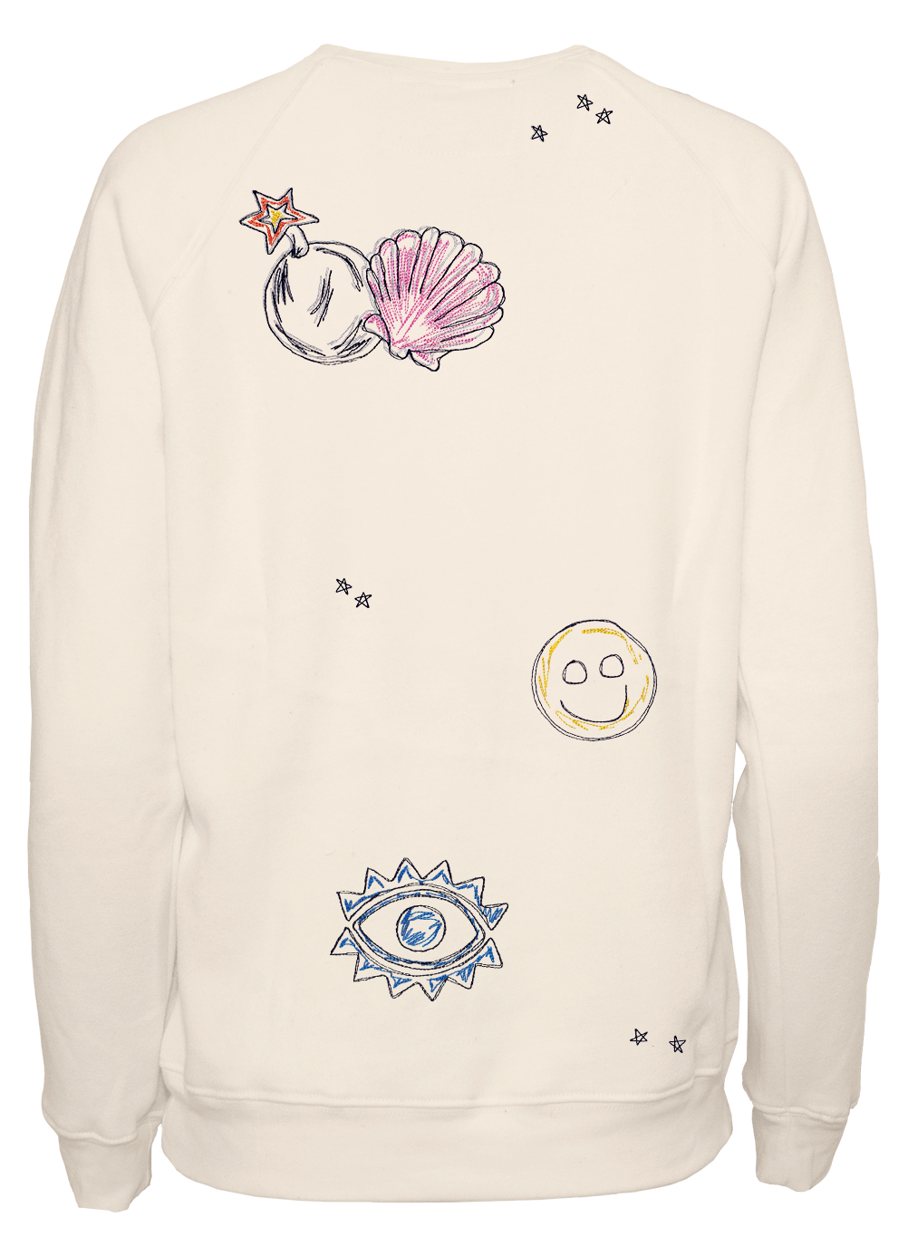 My classic cut crewneck pullover in women’s sizing made from my special Ridiculously Cozy fabric in your choice of cream, sunset pink, terracotta, or Zuma blue featuring my exclusive Scribble Sprinkle designs embroidered on thoughtfully around the garment.